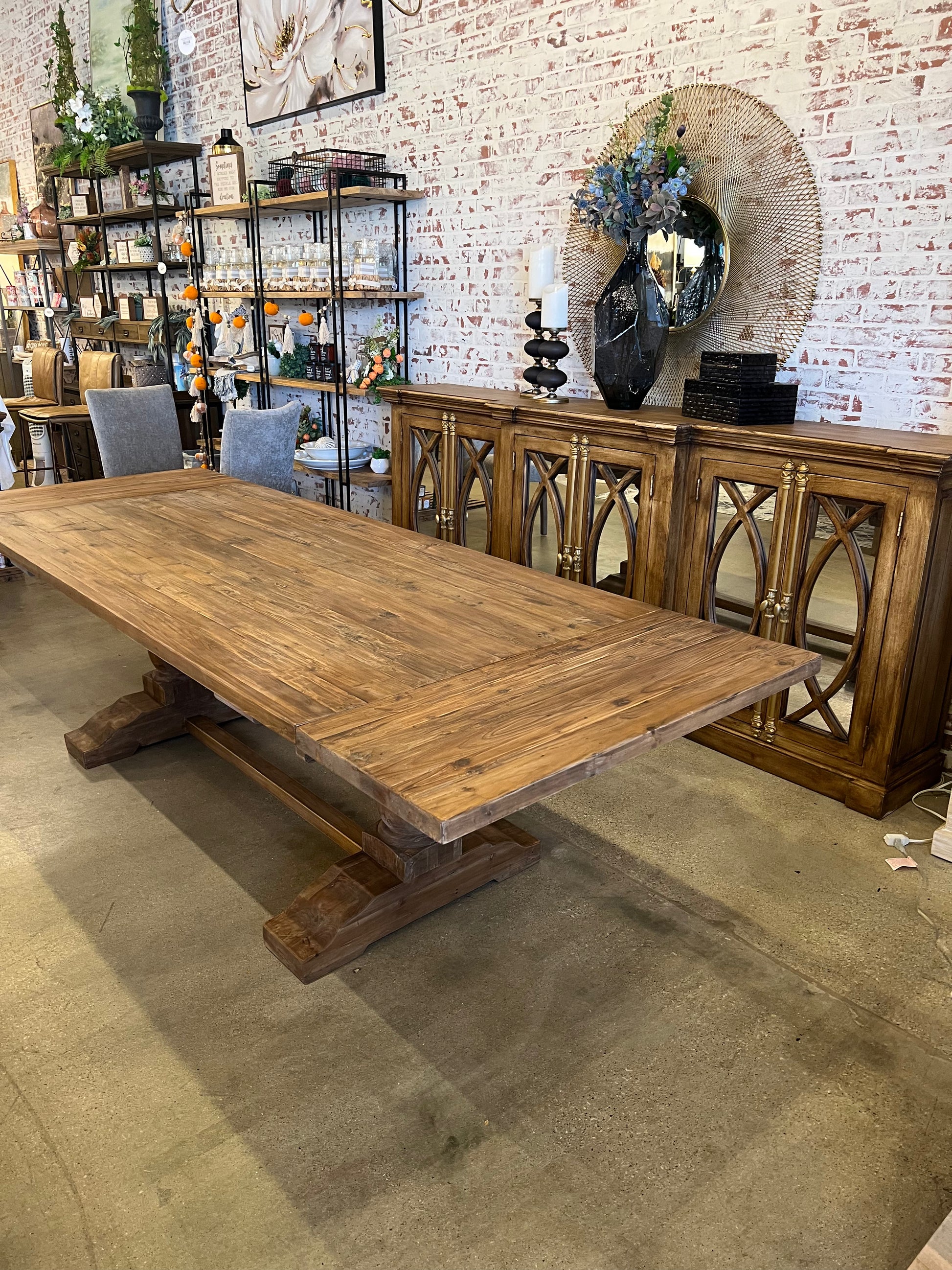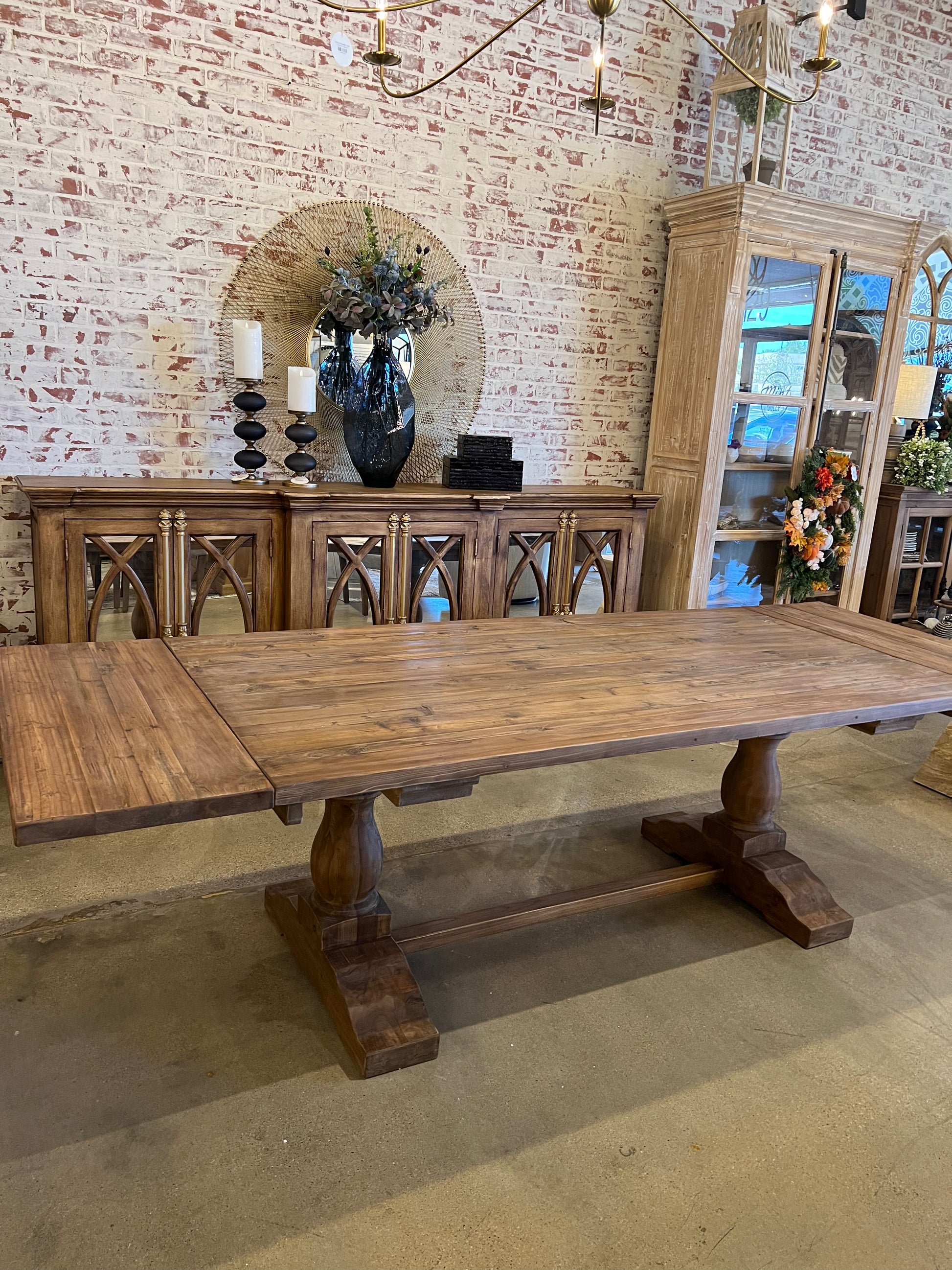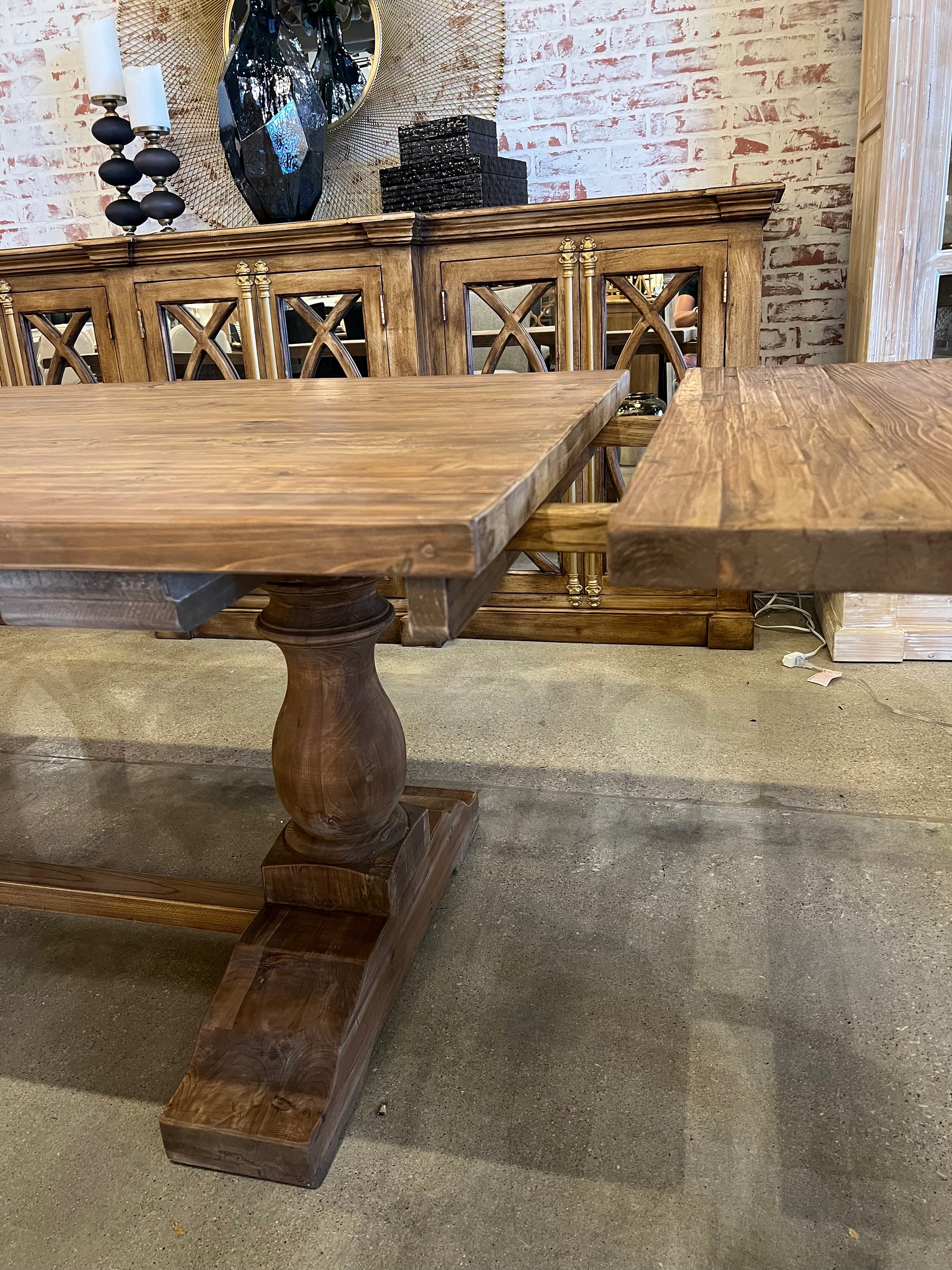 Experience the rustic beauty and functionality of our Asher Extension Dining Table. The medium natural finish adds warmth to any dining space, while the trestle design provides stability and style. Perfect for entertaining or everyday use, this table adapts to your needs with an extension option. Elevate your dining experience with Asher.