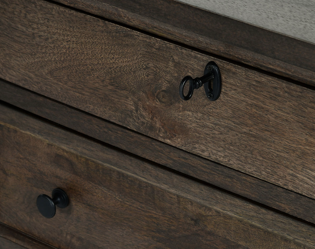 Introducing the Adelaide Nightstand, crafted from solid mango wood with a rich cocoa finish. With three spacious drawers adorned with matte bronze hardware, this transitional style piece offers both elegance and ample storage. Elevate your bedroom with this sophisticated and exclusive design.