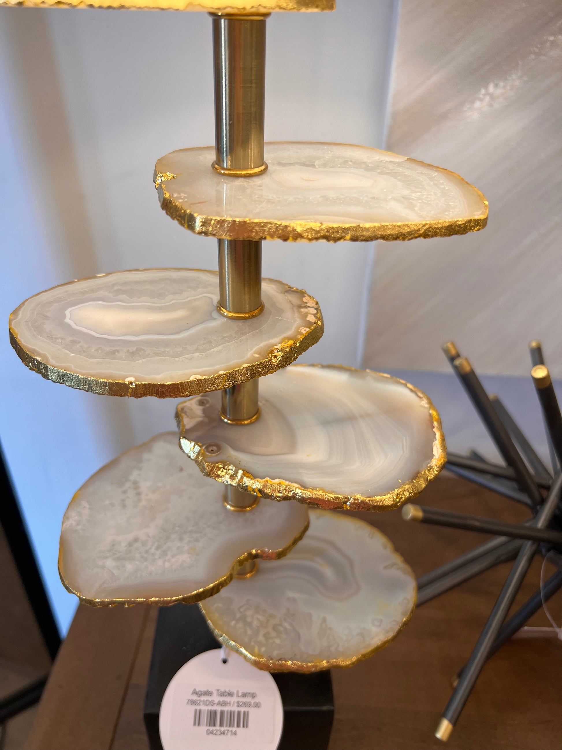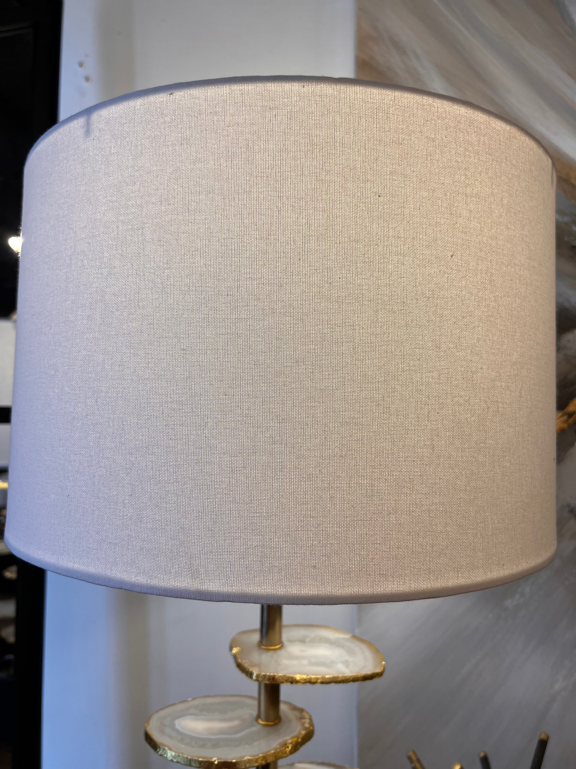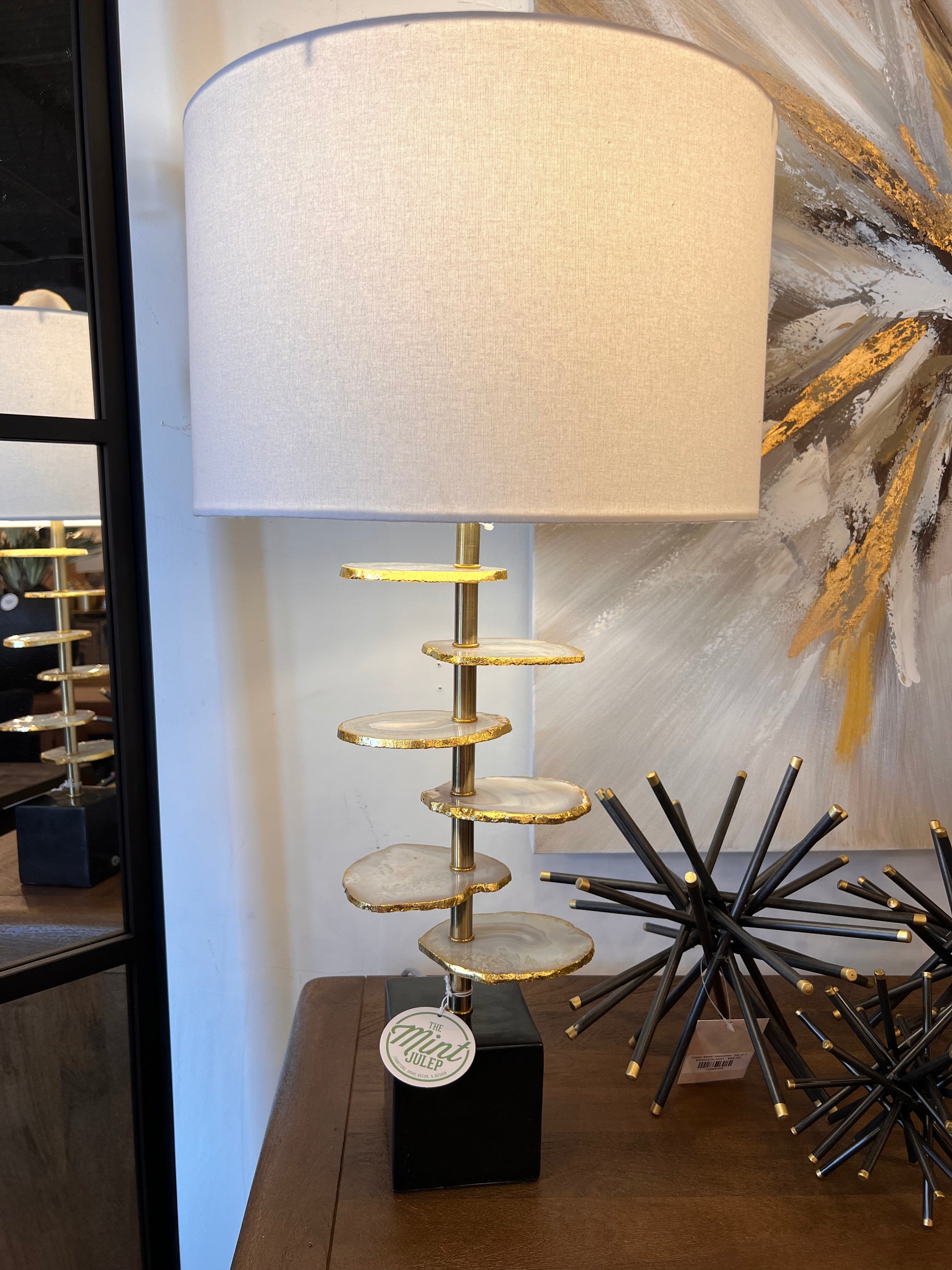 With a marble base, and slices of genuine agate making up the body, this table lamp exudes contemporary style with the influence of nature. Finished with a white drum shade and agate finial, the Smoke Agate Slice Marble Base Lamp is a versatile piece that makes a dynamic focal point. Make a statement by placing this stunning lamp in your bedroom, living room, foyer, or office.