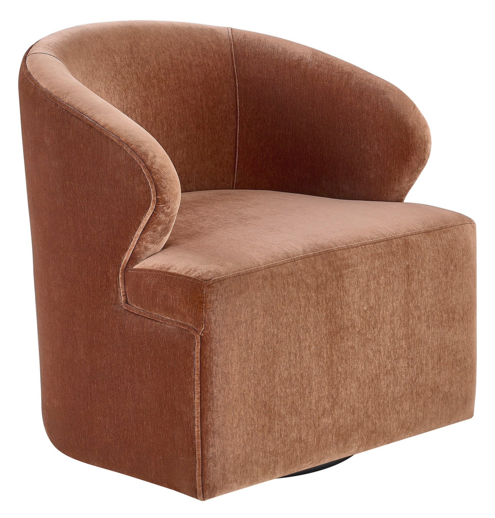 Introducing the Britton Chair—a stylish swivel chair that blends modern design with luxurious comfort, featuring a sleek, curved silhouette with soft lines for a warm, contemporary feel. Upholstered in rich rust velvet, it adds depth and elegance to any space. A smooth 360-degree swivel makes it both stylish and functional, perfect for living rooms, offices, or bedrooms. Compact yet comfortable, it’s an effortless statement piece that enhances any seating arrangement.