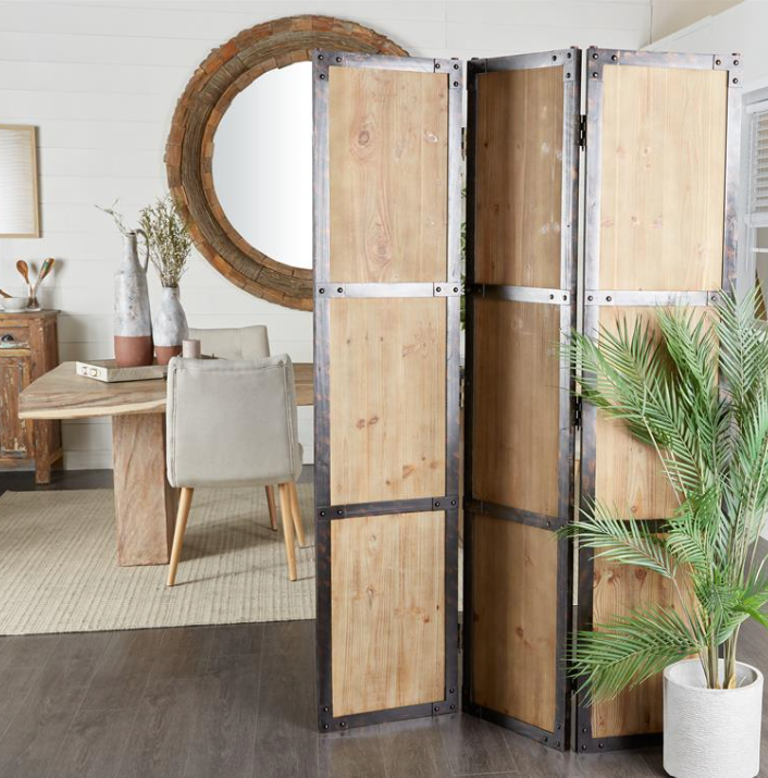 This stylish Brown Wood Hinged Partition is sure to make a statement in any room. This piece is constructed from warm brown wood and metal, perfect for dividing a room in an elegant and refined manner. Create separate areas for comfort and convenience while still maintaining an open design.