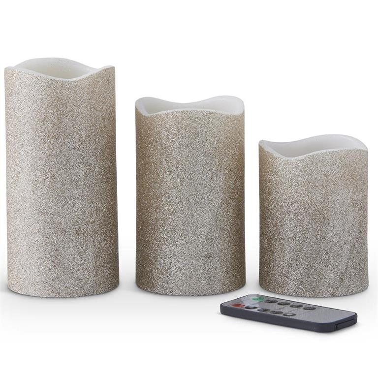 Champagne Glitter LED Wax Pillar Candles with Timer/Remote, Set of 3