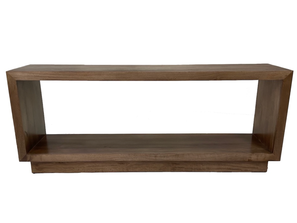 Crafted with solid mango wood, the Charleston Console adds natural warmth to any room. Its open design offers easy access and a versatile look for your space. Achieve a warm, medium brown finish for classic style. Expertly constructed for long-lasting beauty.