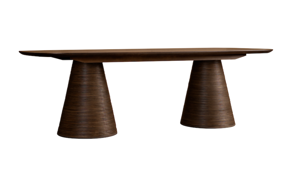 Expertly crafted from solid wood, the Leighton 96" Dining Table boasts a sleek design with ribbed legs and soft rounded edges. With a generous size of 96", this dining table provides ample space for gatherings and meals, making it a must-have for any dining room.