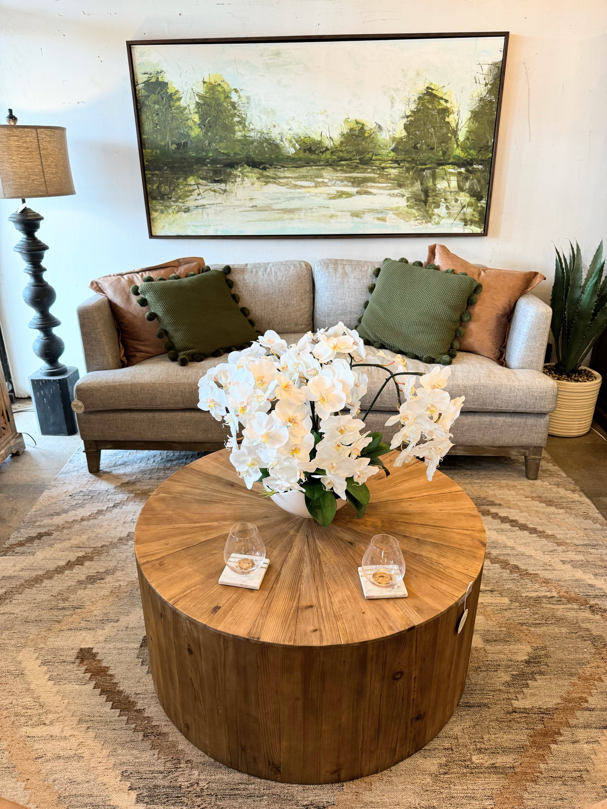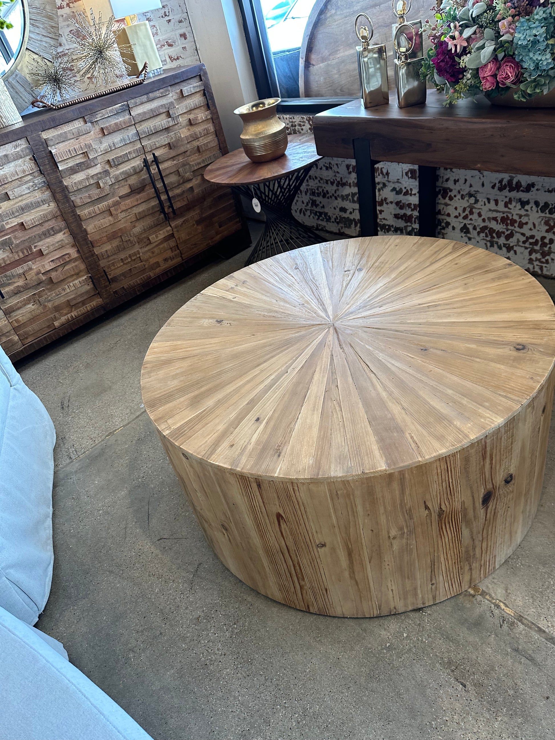 The Ellen Round Elm Coffee Table brings a touch of classic organic wood tones to any living space. This solid elm wood coffee table has a transitional style, ensuring its warmth fits perfectly in any room. A timeless round table perfect for family gatherings.