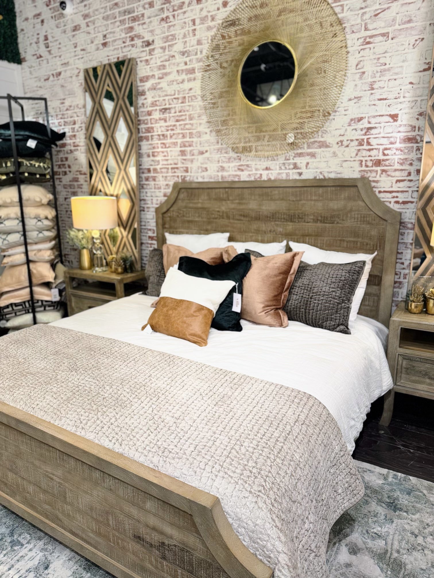 The Francesca King Bed brings timeless transitional style to any bedroom! Expertly crafted from solid mango wood for exceptional quality and lasting durability, this bed is sure to become the centerpiece of your room. Enjoy luxurious relaxation and sophistication with the Vintage Taupe finish. See the whole Francesca collection & coordinating pieces!