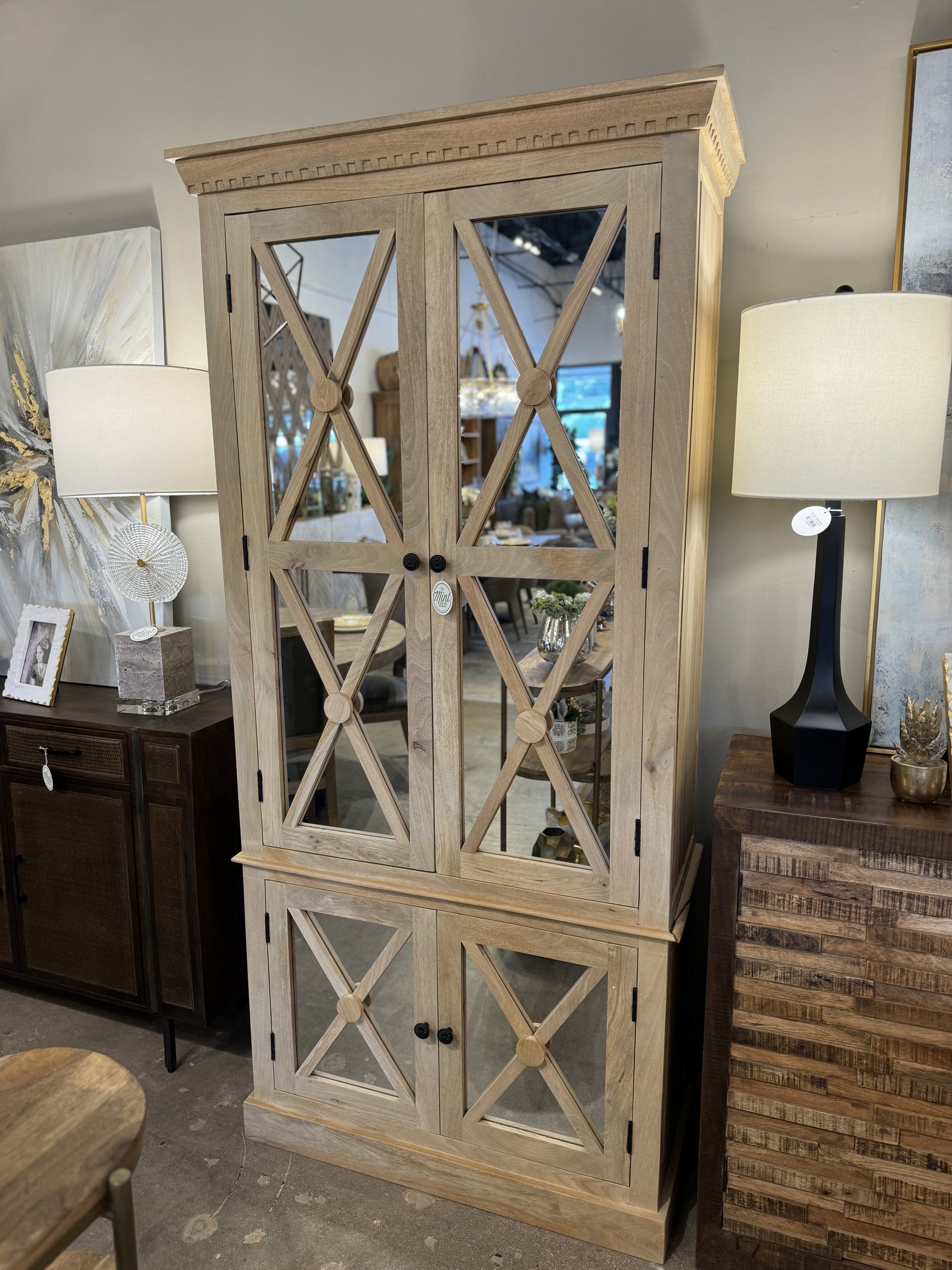 Maximize your storage space with the Gabriel Four Door Tall Cabinet. Crafted from light natural mango wood, this elegant storage cabinet features a mirrored front and intricate cross design. Perfect for any room in your home, this versatile piece adds both functionality and style.