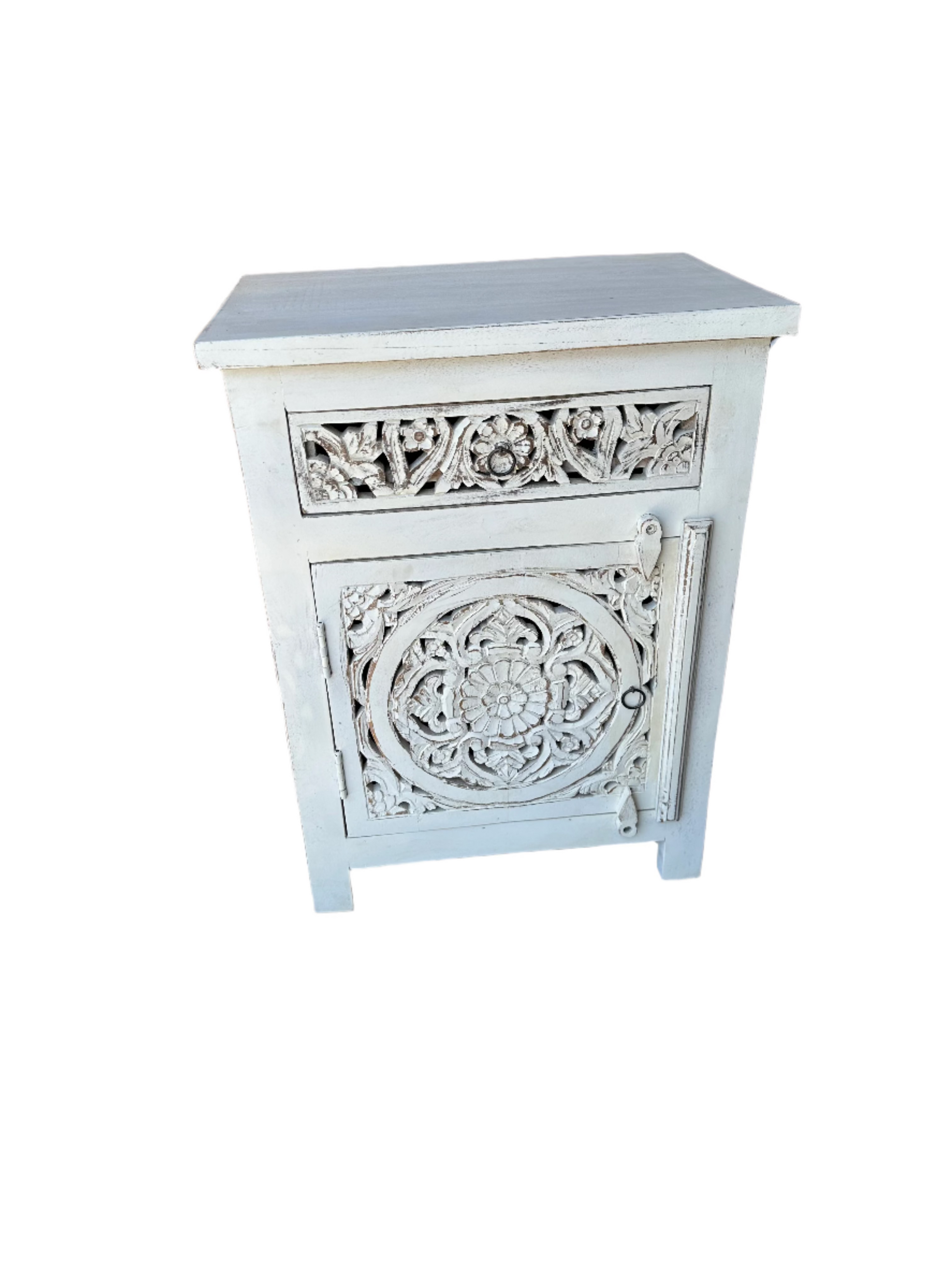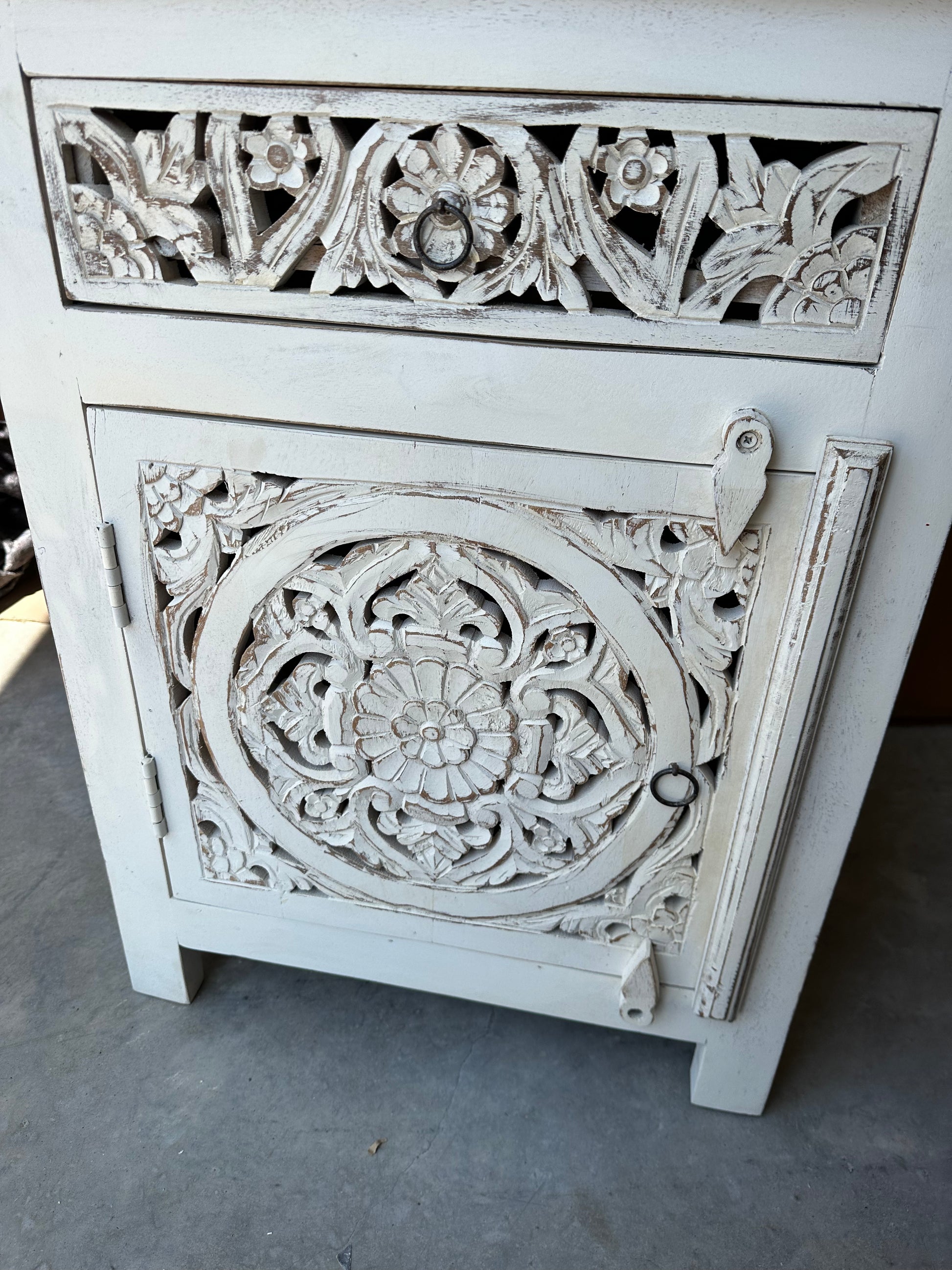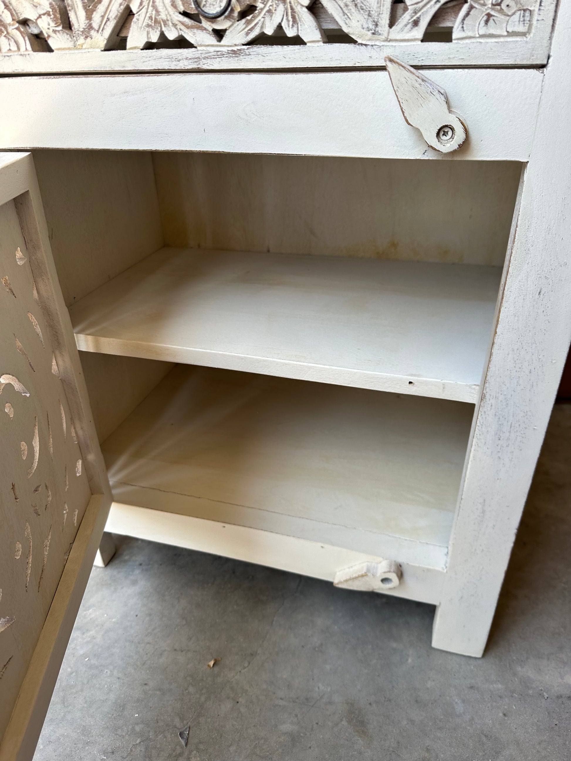 This gorgeous white solid mango wood chest, with one sizable drawer, a cabinet with 2 shelves, will be the perfect addition to your home! Great for Nightstands!