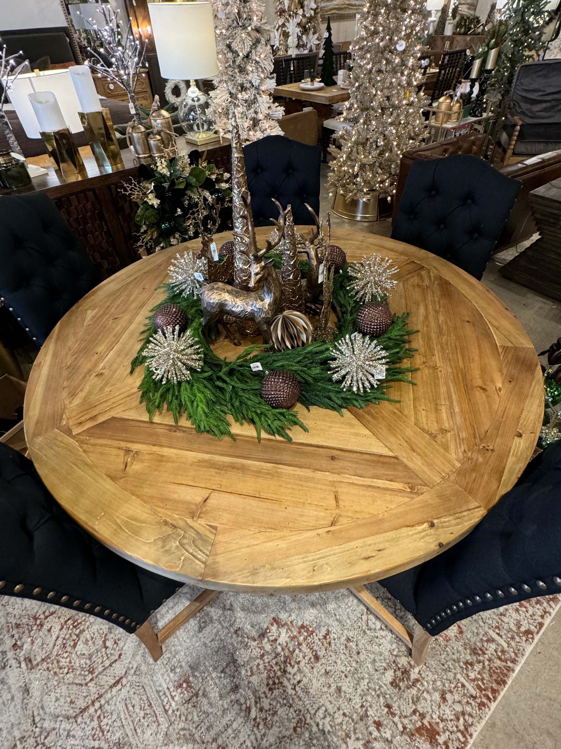 Experience the perfect blend of modern elegance with the Hayley Round Elm Dining Table. Crafted from solid elm wood with a parquet top, this table boasts a warm natural wood finish. Its contemporary design is elevated by a sleek pedestal base, creating a stylish and sophisticated addition to any dining space.