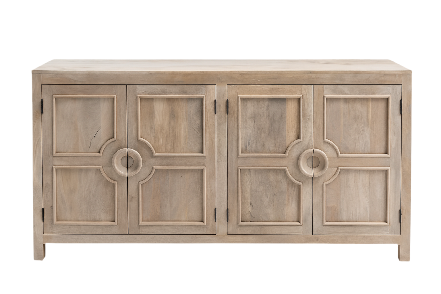 Introducing the Henry Sideboard Natural - the perfect storage solution! Made with solid mango wood, this transitional style cabinet features 4 doors, providing ample space to declutter any room. Elevate your home decor and streamline your space with the Henry Sideboard Natural.