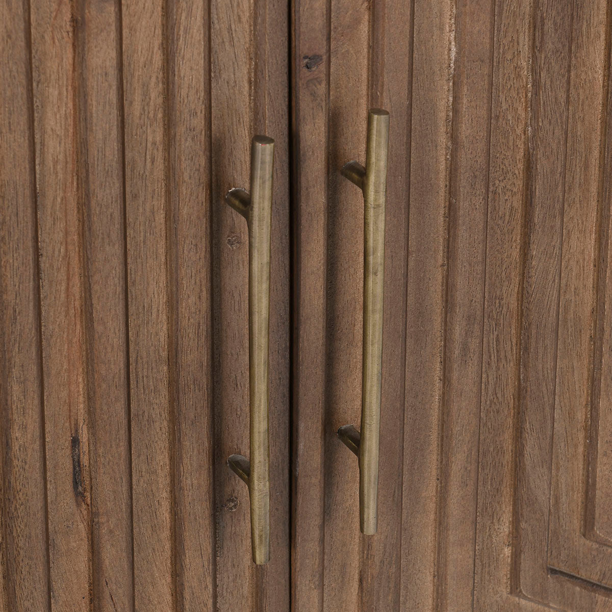 This light brown Holmes 4 Door Sideboard is the perfect addition to any room. Crafted with solid wood and featuring an intricate pattern, this elegant sideboard is both durable and stylish. With ample storage capacity, it is sure to provide a timeless look for your home.