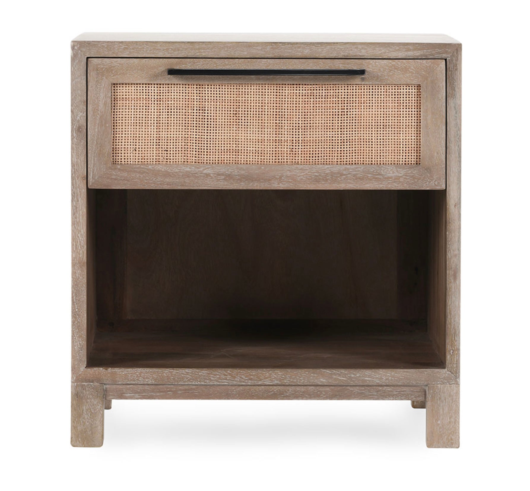 The Jensen 1 Drawer Nightstand is the perfect choice for your bedroom. Crafted from solid wood and finished with a natural light weave finish, this nightstand is a beautiful addition any home. It features one drawer for storage, and woven sides for a unique and timeless aesthetic.