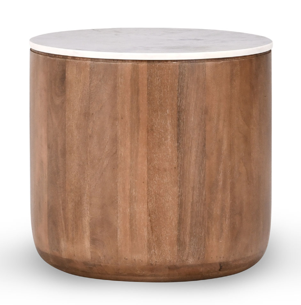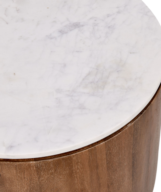 Elevate your living room with the Josie Round Mango Wood Side Table! Crafted from high-quality mango wood and topped with luxurious marble, this round coffee table adds elegance and character to any space. Enjoy the unique blend of natural and modern elements while sipping your morning coffee.