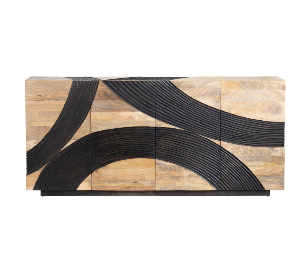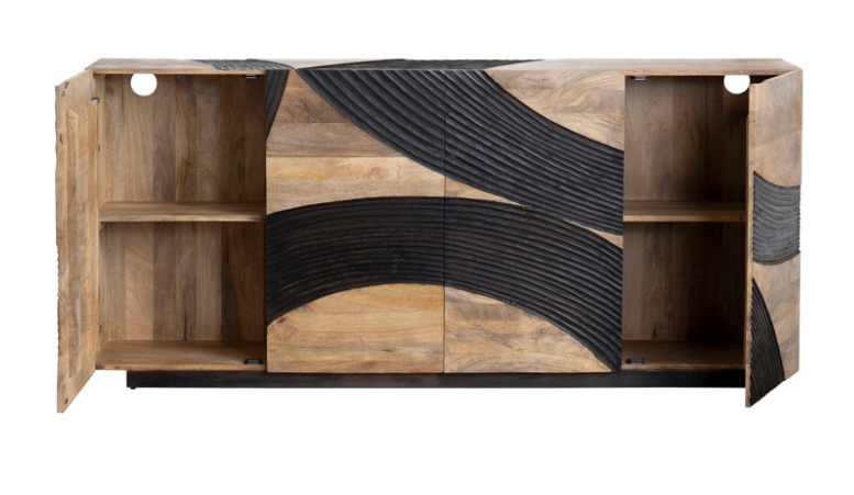 The Lennox Sideboard offers a sophisticated touch to any room with its sleek black designed front and ample storage space behind 4 doors. Elevate your home decor while keeping your space organized and clutter-free. Expertly crafted for both style and functionality, the Lennox Sideboard is a must-have for any modern home.