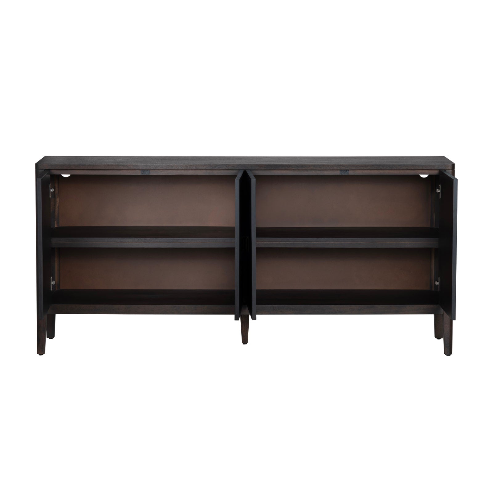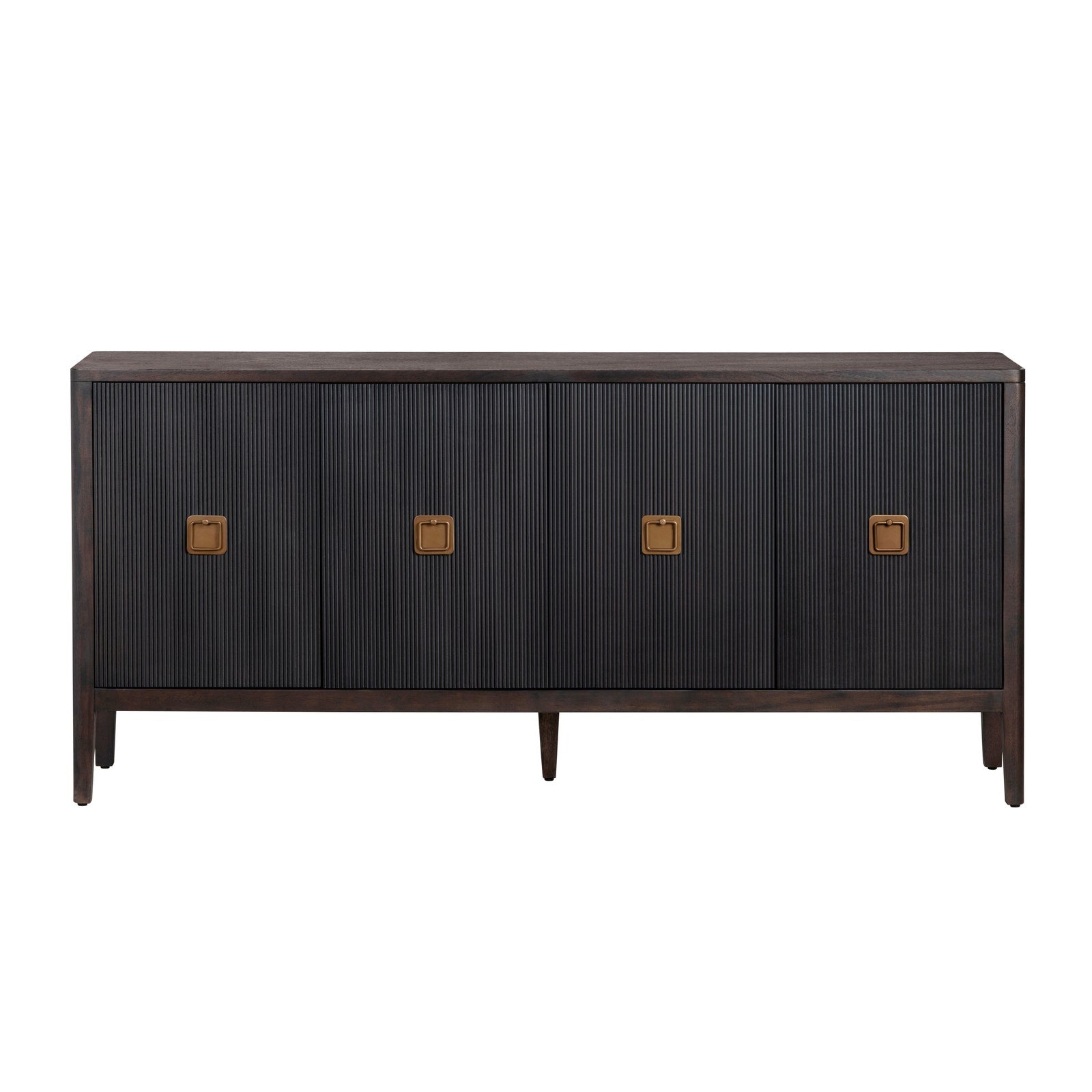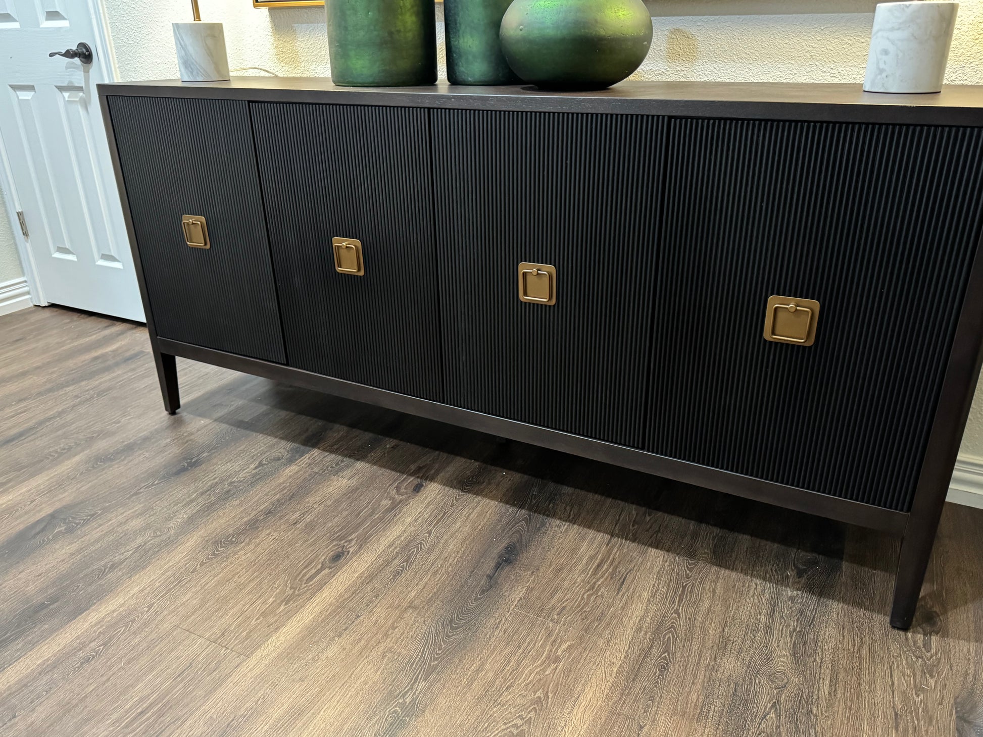 Enhance your living, dining, bedroom, or entry with our Madsen Sideboard, featuring a gorgeous wooden design with a rich brown and black finish. With brass hardware and three spacious drawers, this piece offers both style and practicality for all your storage needs. Elevate your look today!