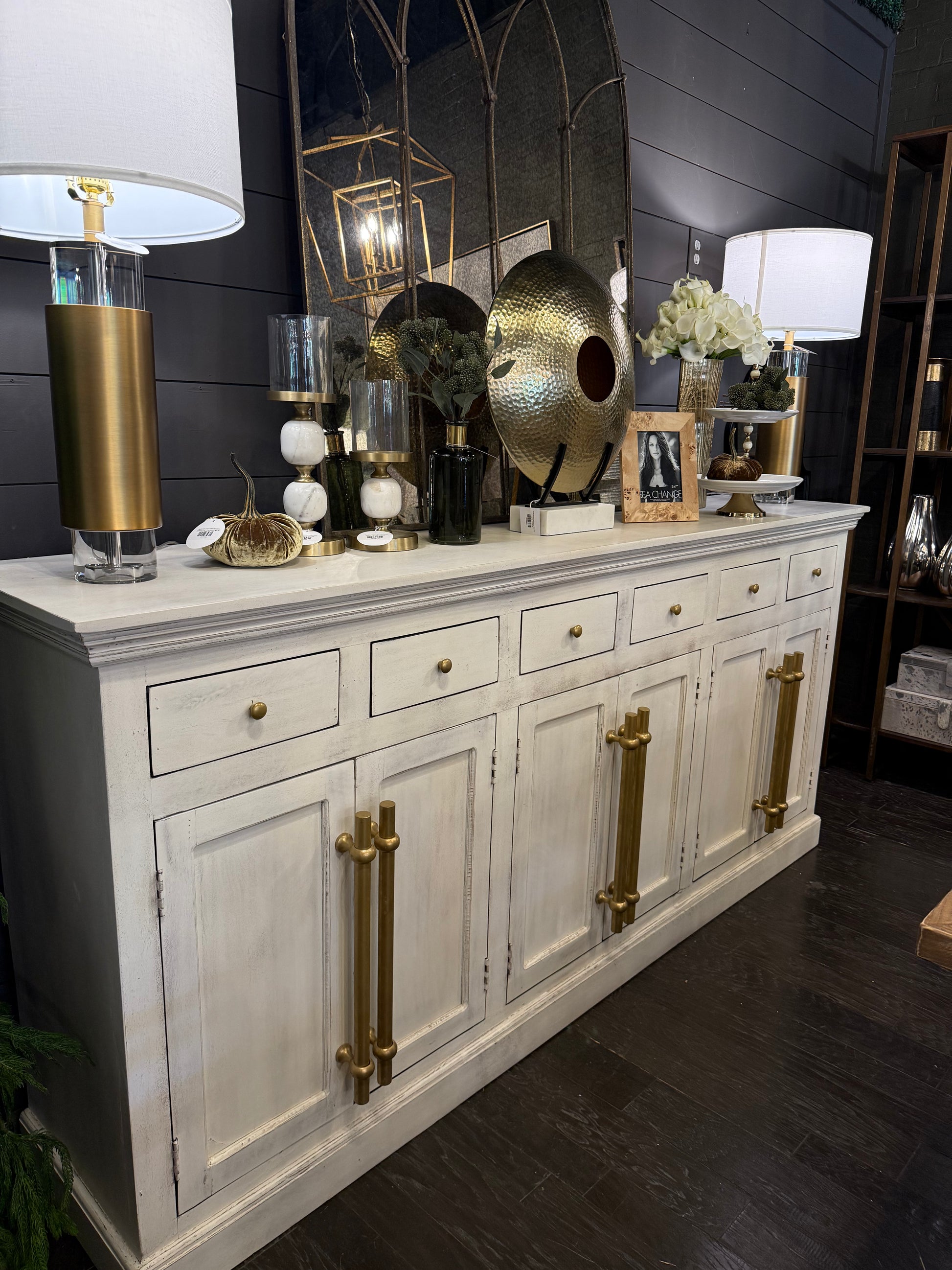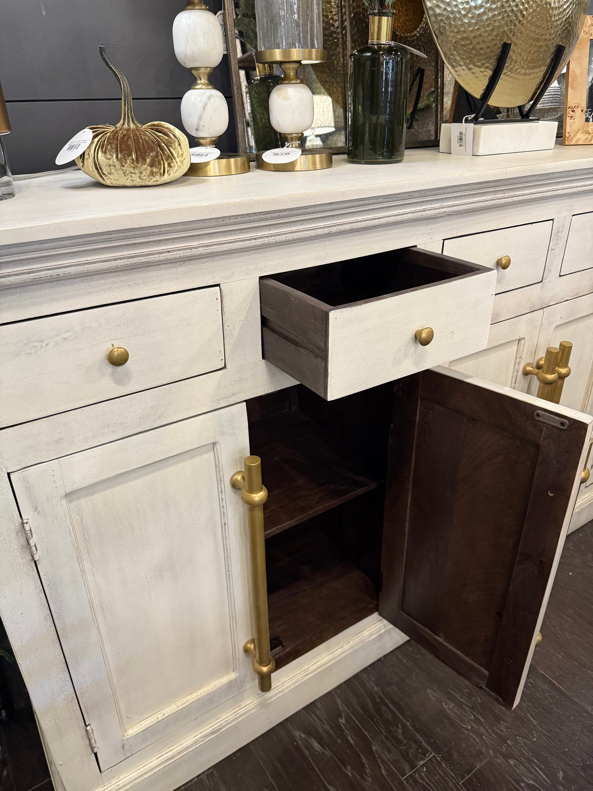 The Marley Mango Wood Breakfront in white combines timeless design with durable craftsmanship. Made from sustainable mango wood, its clean white finish enhances any space while highlighting the natural wood grain. This breakfront offers ample storage and display options with multiple shelves and compartments, perfect for organizing essentials in style. Ideal for living rooms, dining areas, or offices, it balances elegance and practicality for a refined interior.