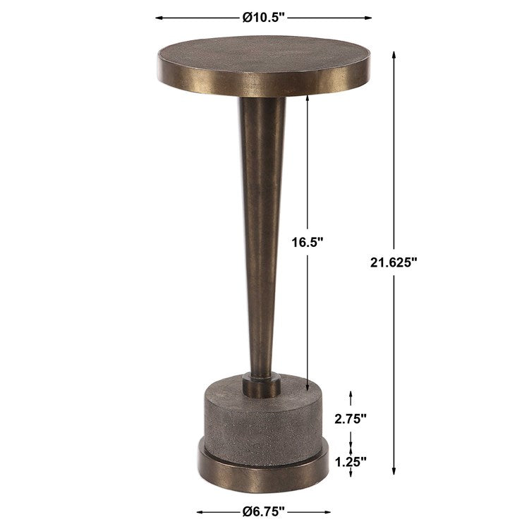 A perfect landing spot for a drink or a book, this mixed material accent elevates the industrial feel of natural gray concrete with modern accents of oxidized bronze steel.