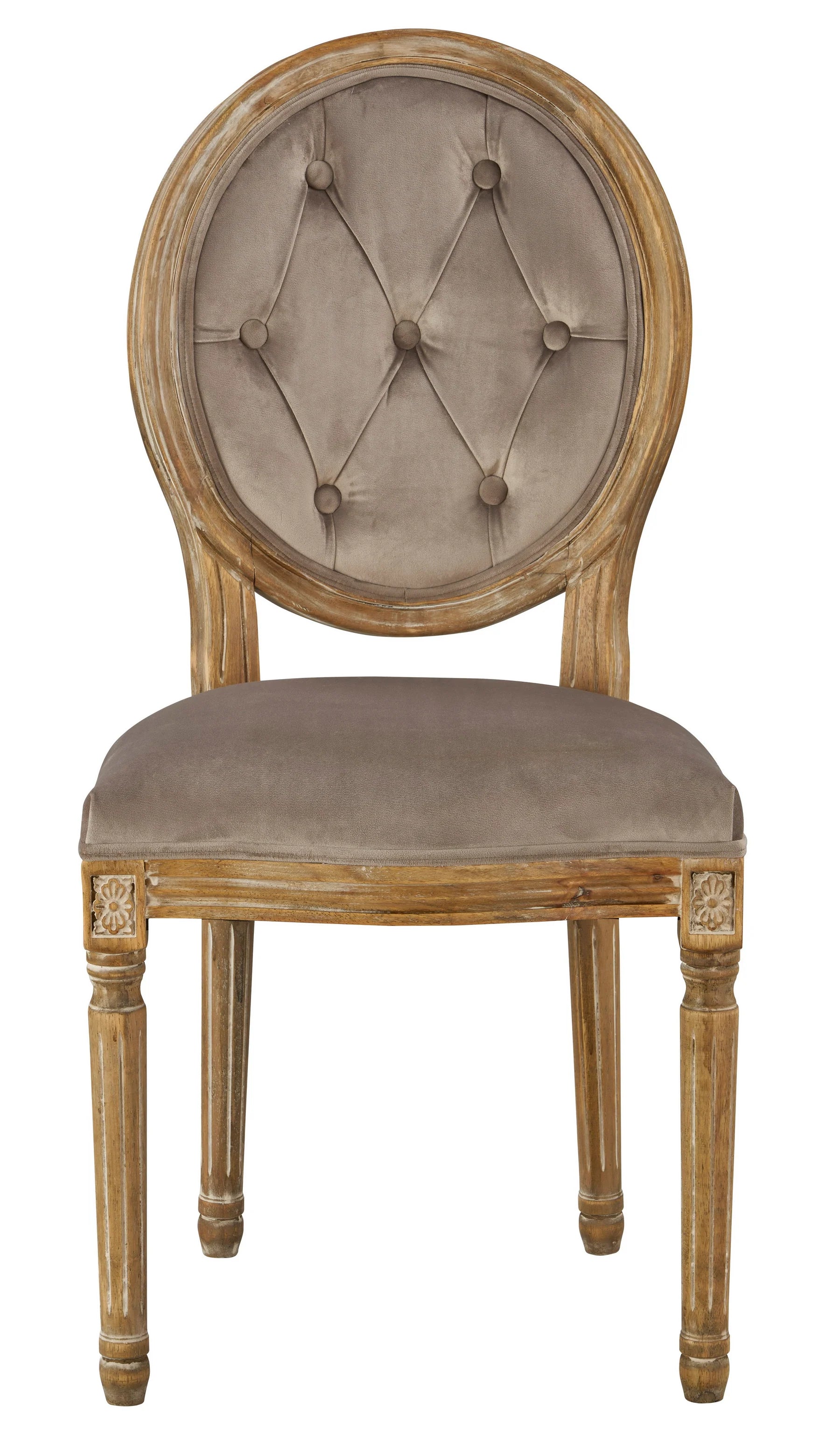 Stunning tufted velvet chair with a circle back framed in wood! Elegantly designed with beautiful detailing, this chair will lend an air of sophistication to any room.