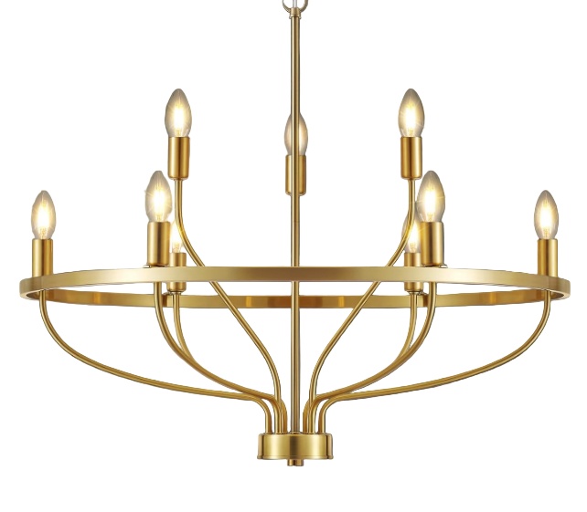 Elevate your space with the Modern Gold 9-Light Chandelier, expertly designed to blend contemporary style with timeless elegance. Featuring a striking gold finish and twelve lights, this chandelier provides ample illumination while serving as a sophisticated focal point. Perfect for dining rooms, entryways, or living areas, it offers both functional lighting and refined aesthetic appeal, enhancing the ambiance with its warm metallic glow and clean, modern lines.