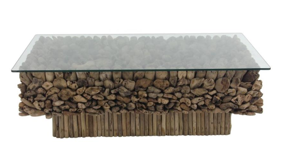 Natural Driftwood Pedestal Rectangular Coffee Table