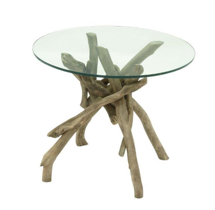 Thick driftwood branches support the smooth and rounded glass top. The wood's brown finish makes this the perfect table for rustic settings or a natural theme. Place rustic-style Decor, lamp, or your favorite plants on its smooth glass surface.