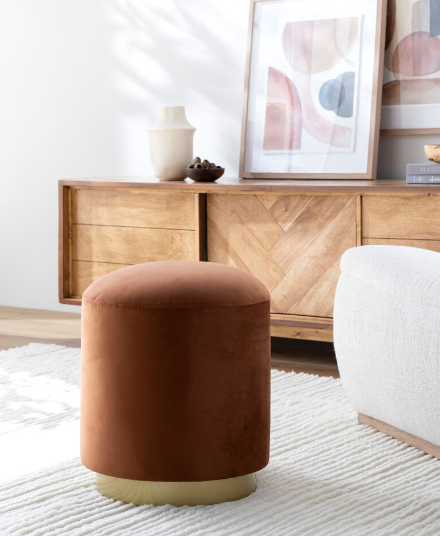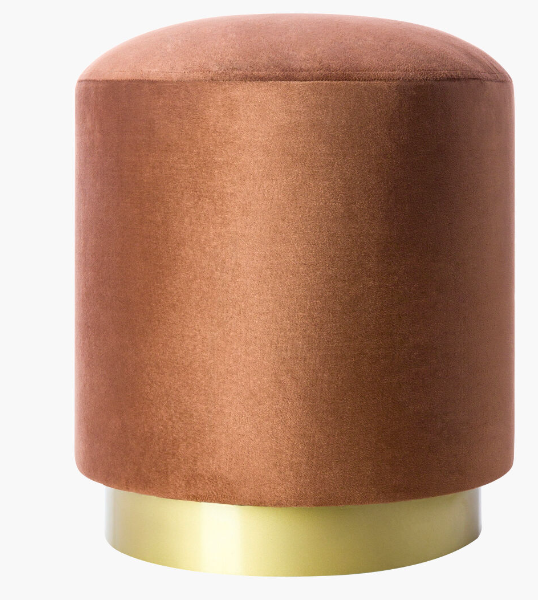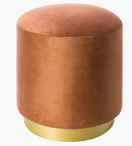 Introduce luxury into your living space with the elegant Roxeanne Ottoman in lustrous brown velvet. The gold base adds a touch of opulence while providing sturdy support. A perfect addition to any room, the Roxeanne Ottoman is the epitome of style and comfort.