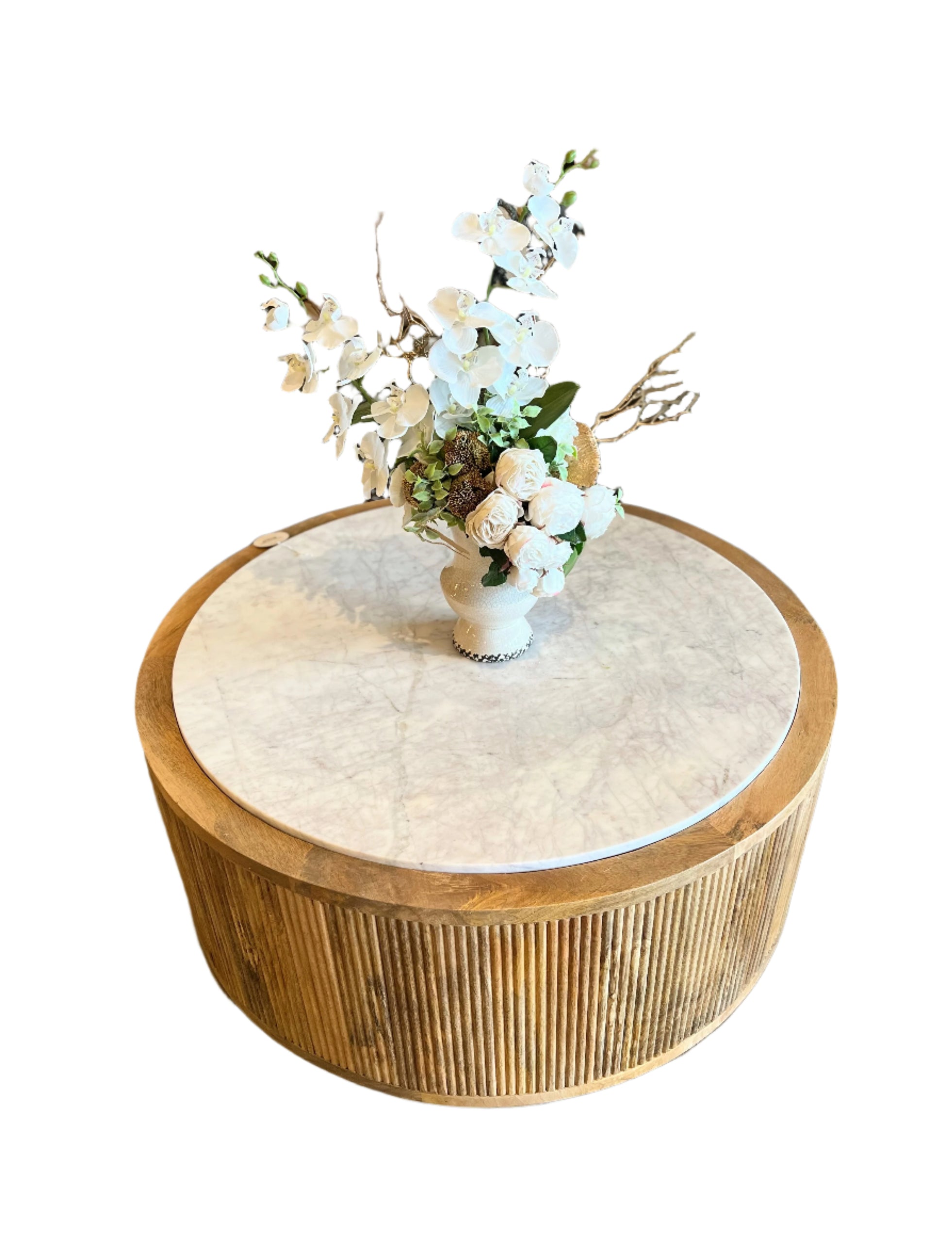 The Sandy Cocktail Table is perfect for any living space. Constructed with beautiful, durable mango wood and a unique round design, this table is built to last. It's perfectly sized for serving cocktails or appetizers and showcases a marble top for added elegance. Make any room shine with this classic cocktail table.