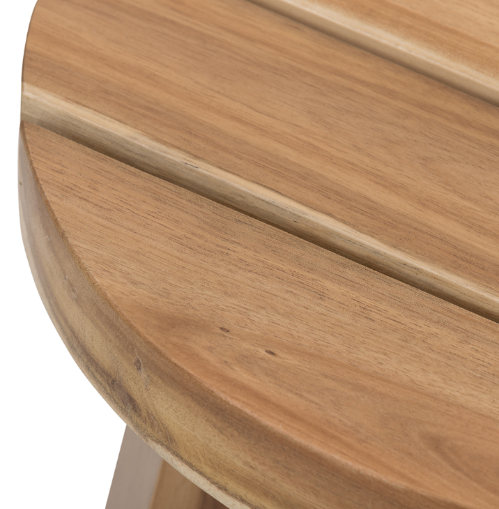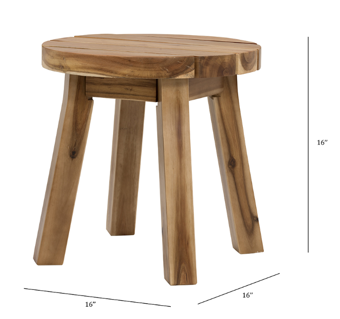 Round out the look of your living room or finished basement with the acacia wood side table. Made from strong wood, this rounded table adds a new stylistic element to any space it inhabits. This table fits well within any design scheme.