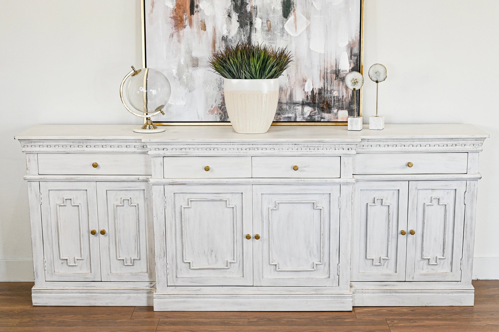 This Taylor Mango 6 Door Breakfront is the perfect statement piece for any living space. Constructed of solid natural mango wood, it features a transitional style that melds modern and traditional elements beautifully. Perfect for a long wall, it makes a stunning impression.