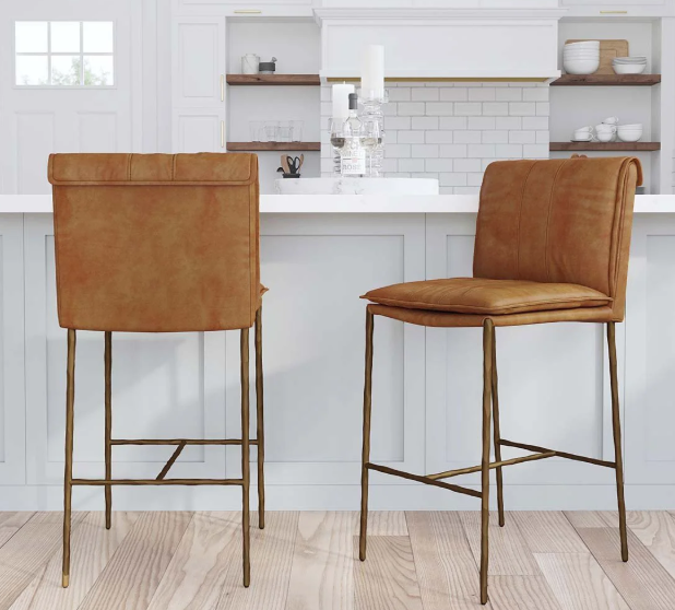 Beautiful camel leather counter height stool. Perfect for your island countertop. Extremely comfortable & durable. Very strong metal legs!