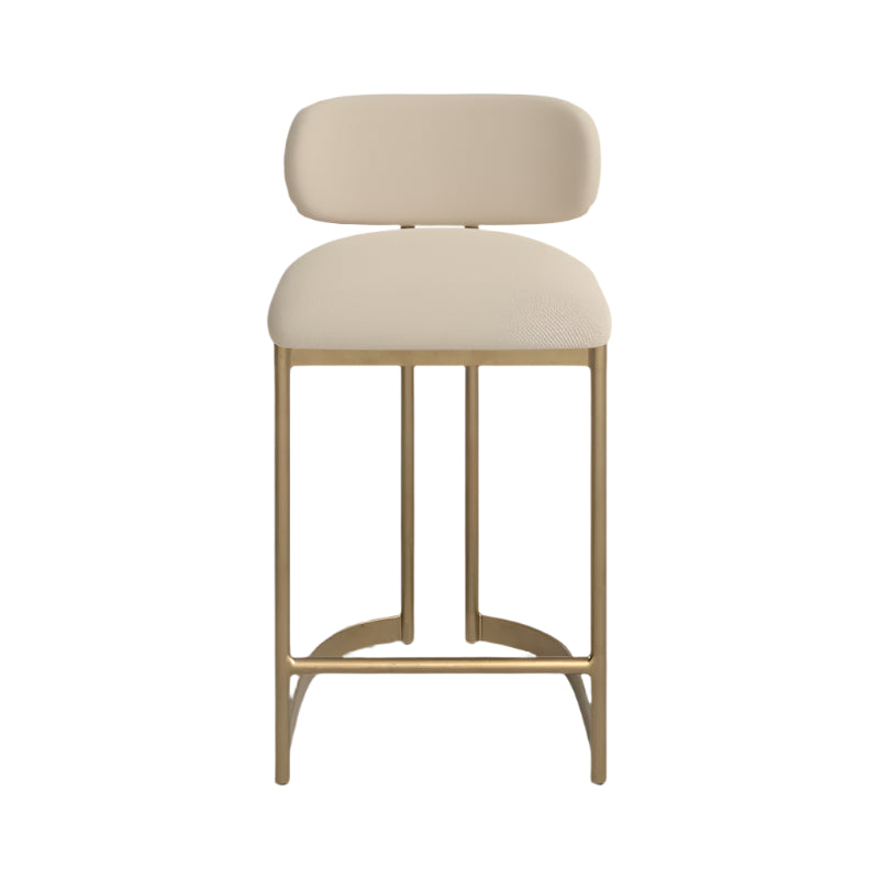 This counter stool combines modern inspiration with Art Deco details, creating a statement piece for your kitchen or home bar. The metal frame and legs, finished in antique brass, offer a stylish base, while the linen upholstery on the solid back and seat adds a layer of sophistication. Filled with foam and with a built-in footrest, it promises comfort for leisurely meals. We love that the armless construction ensures you can slide this bar stool under a high top when not in use. Pick it up solo as an accent piece or multiple for a cohesive look.