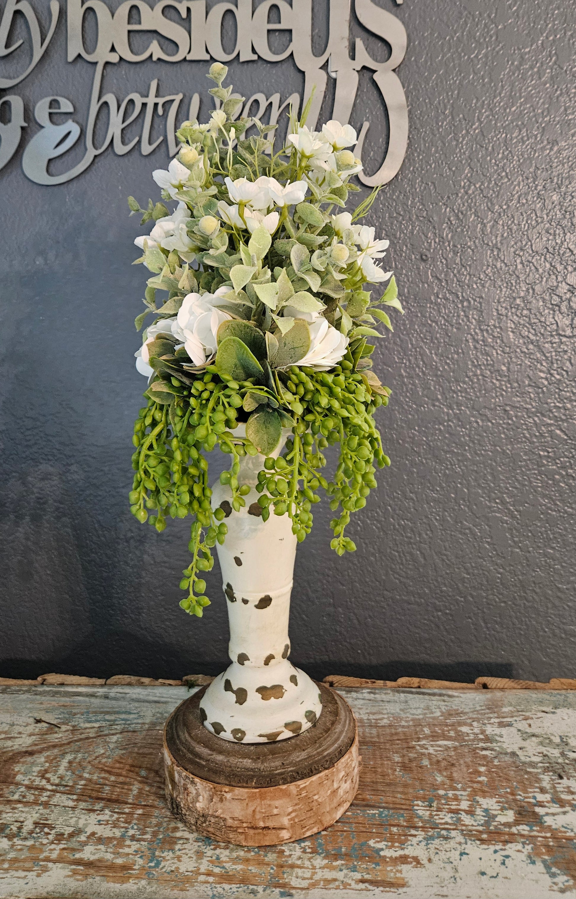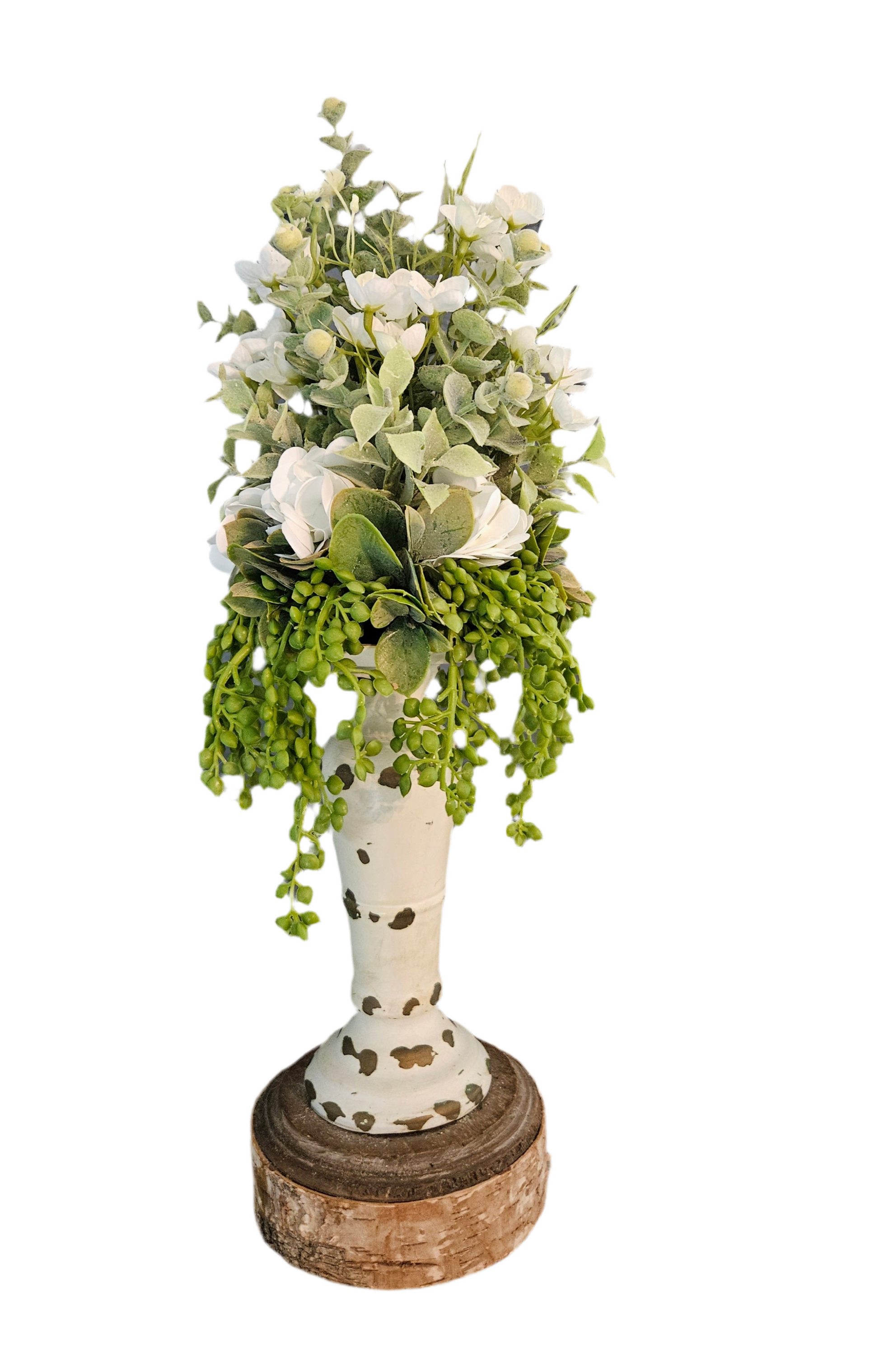 This 9" tall topper arrangement is designed to easily dress your candlestick.