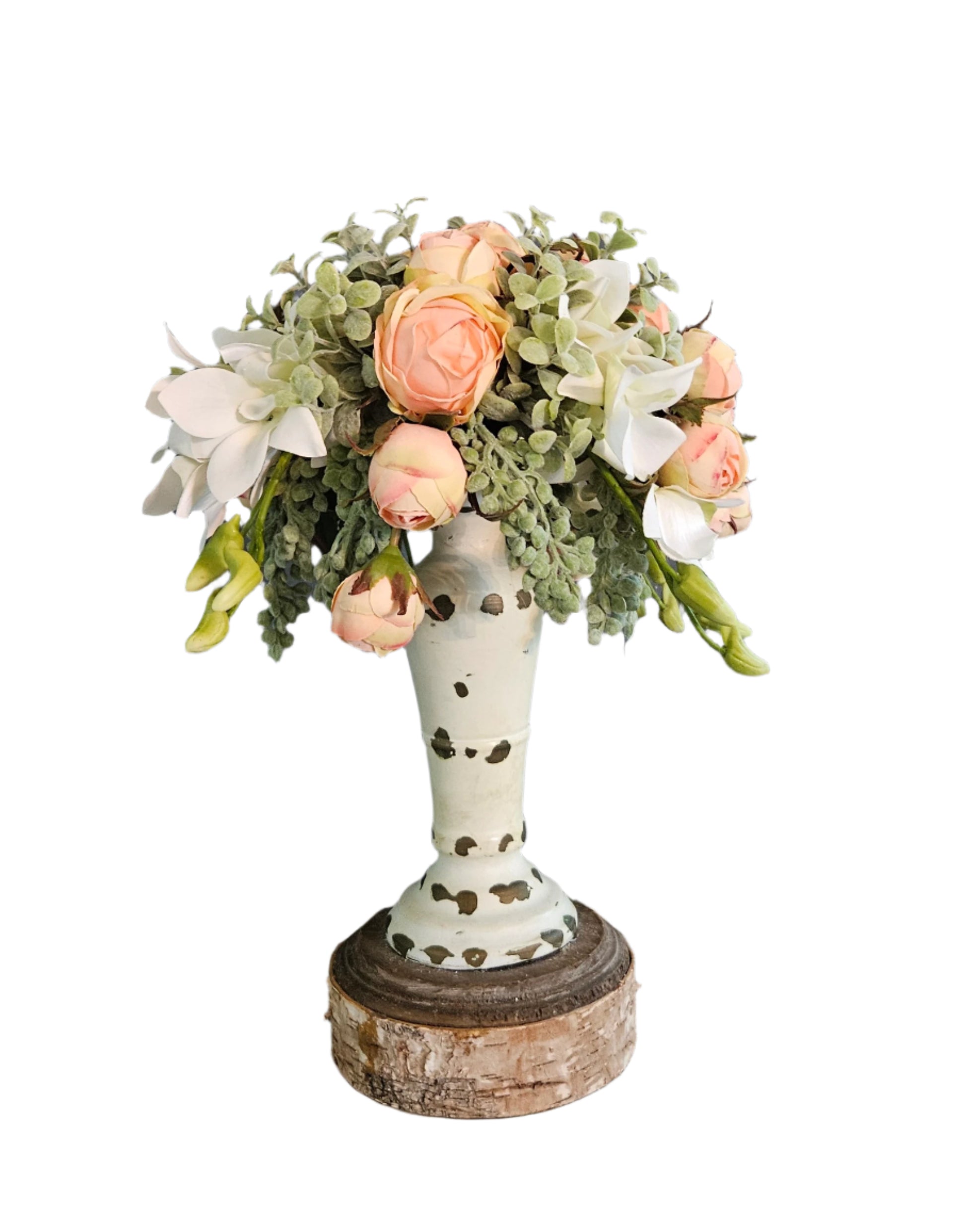 This removable is designed with real touch orchids, hydrangeas and rose buds.