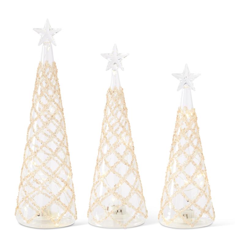 Clear Gold Glass LED Lattice Cone Tree (Various Sizes)
