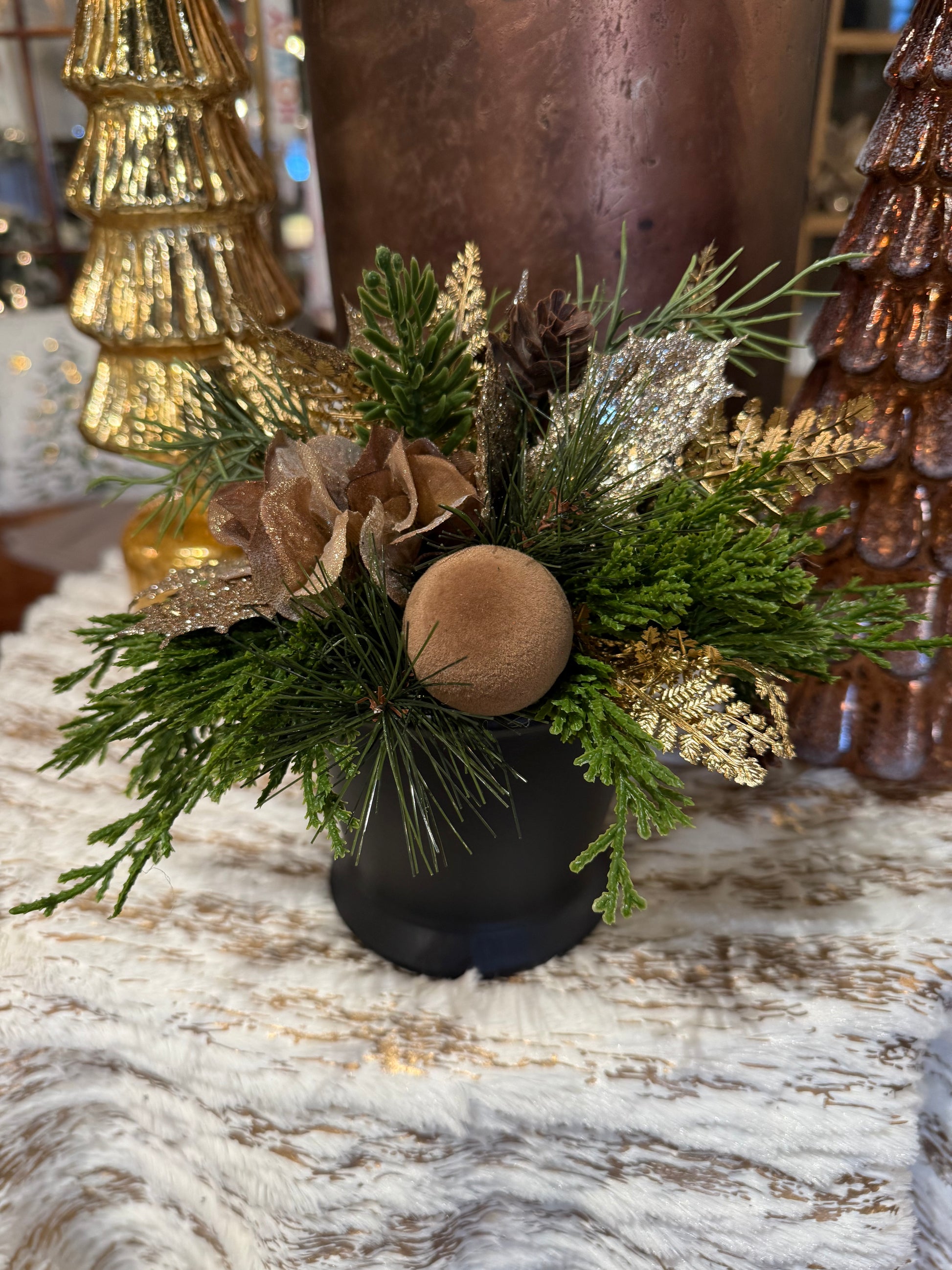 This 7" filler arrangement is designed with real touch pine and assorted textured ornaments.