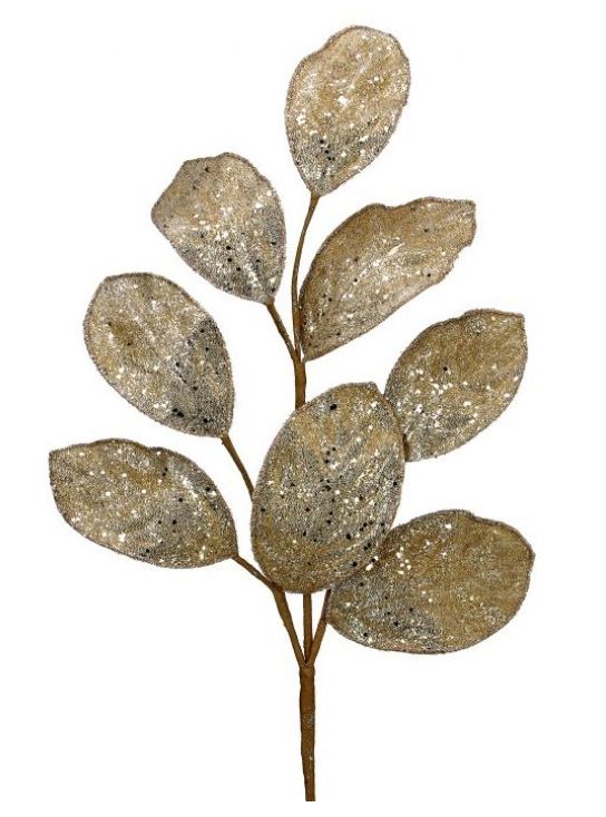 28" Micro Beaded Magnolia Leaf Spray, Champagne