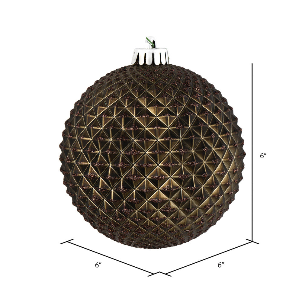 This ornament features glitter accents on a durian design that will add texture to any holiday decorating project. This item is made from shatterproof plastic and utilizes a drilled and wired secure cap for reliable hanging.