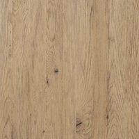 Mix materials for intrigue. A rounded, two-tier coffee table is made from resawn oak with an aged, smoked finish, with heavy graining and natural knots. A lower shelf of woven paper cord brings texture — and storage — into play.