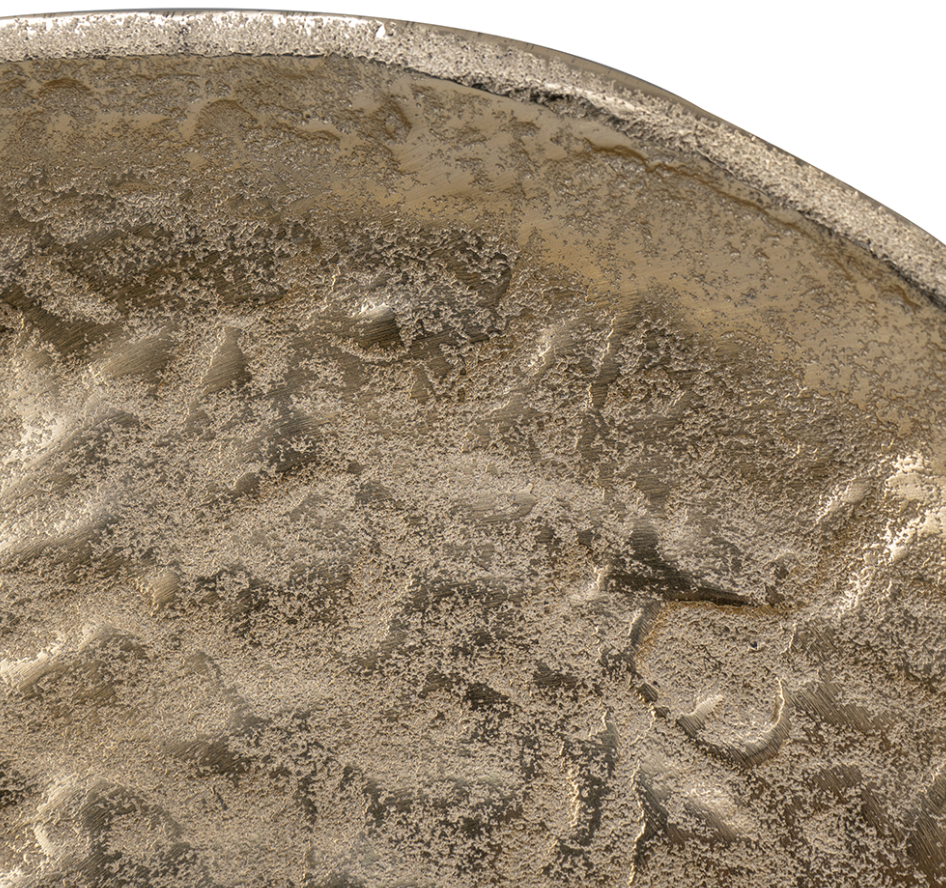 The Aluminum Round Tray on Stand is versatile and can have ample decorative uses throughout a modern home. Made from 100% aluminum with a 14-inch diameter, this tray/stand combo can be used as a TV dinner stand or as place to store your trinkets. Situate this modern stand in your dining room, hallway or foyer.