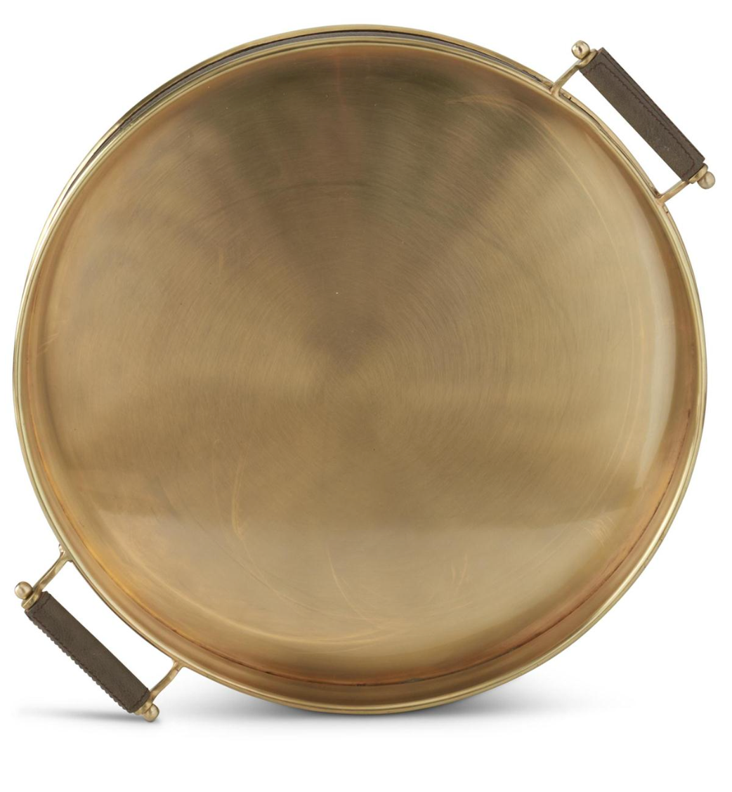 This gold metal round tray is a versatile addition to any home decor. Crafted with a sleek and sturdy metal material, it features convenient handles for easy transportation. Its elegant round shape adds a touch of sophistication to any setting. Elevate your hosting game with this stylish and functional tray.