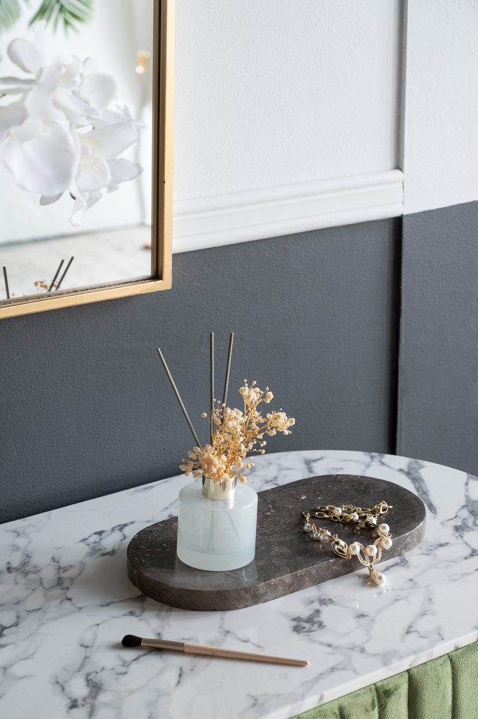 With its clean, oval design, solid marble construction, and charcoal gray colorway embellished with touches of natural white, this decorative tray offers both style and function to your home. As versatile as it is gorgeous, this tray could be used to display a small decorative ensemble, organize cosmetics on your vanity, hold drinks in your bar area, and much more.