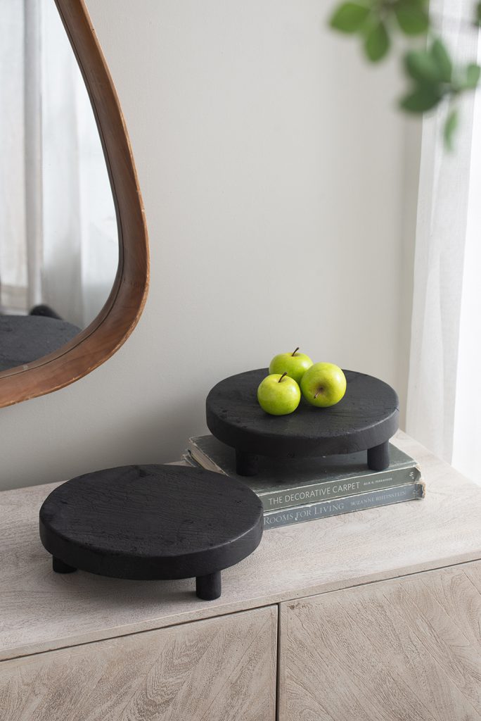 Versatile and perfect for decoration, the Teak Footed Round Trays can serve a number of functions throughout your home. Made from 100% teak root, these trays possess a unique appearance and build. Use these modern decorative trays to accent trinkets or picture frames throughout your home.