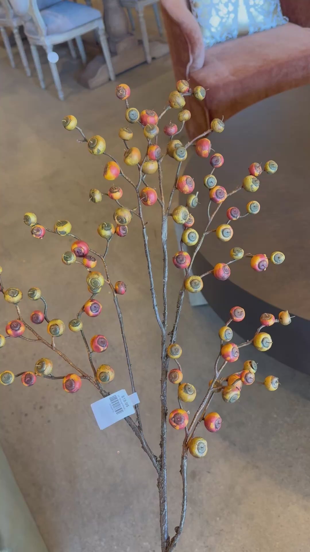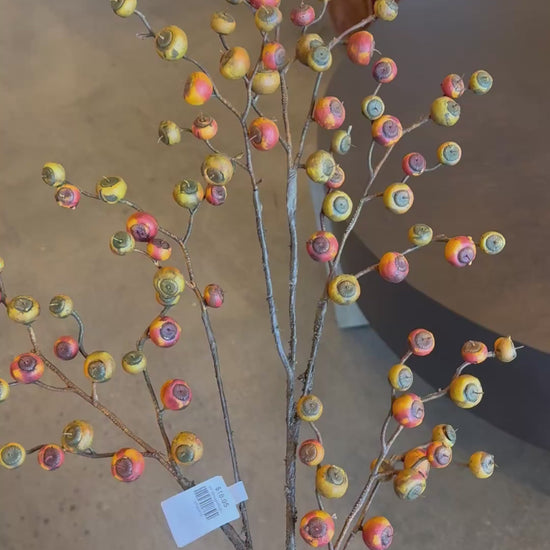 Enhance your floral arrangements with this 36" Orange/Flame Berry Spray, designed to add a vibrant splash of color and texture. Its elongated form and fiery orange hues make it ideal for creating focal points in bouquets, wreaths, or seasonal displays. Perfect for professional decorators seeking to introduce visual interest and warmth without overpowering other elements. Durable and versatile, this berry spray supports a polished, expert finish in any setting.
