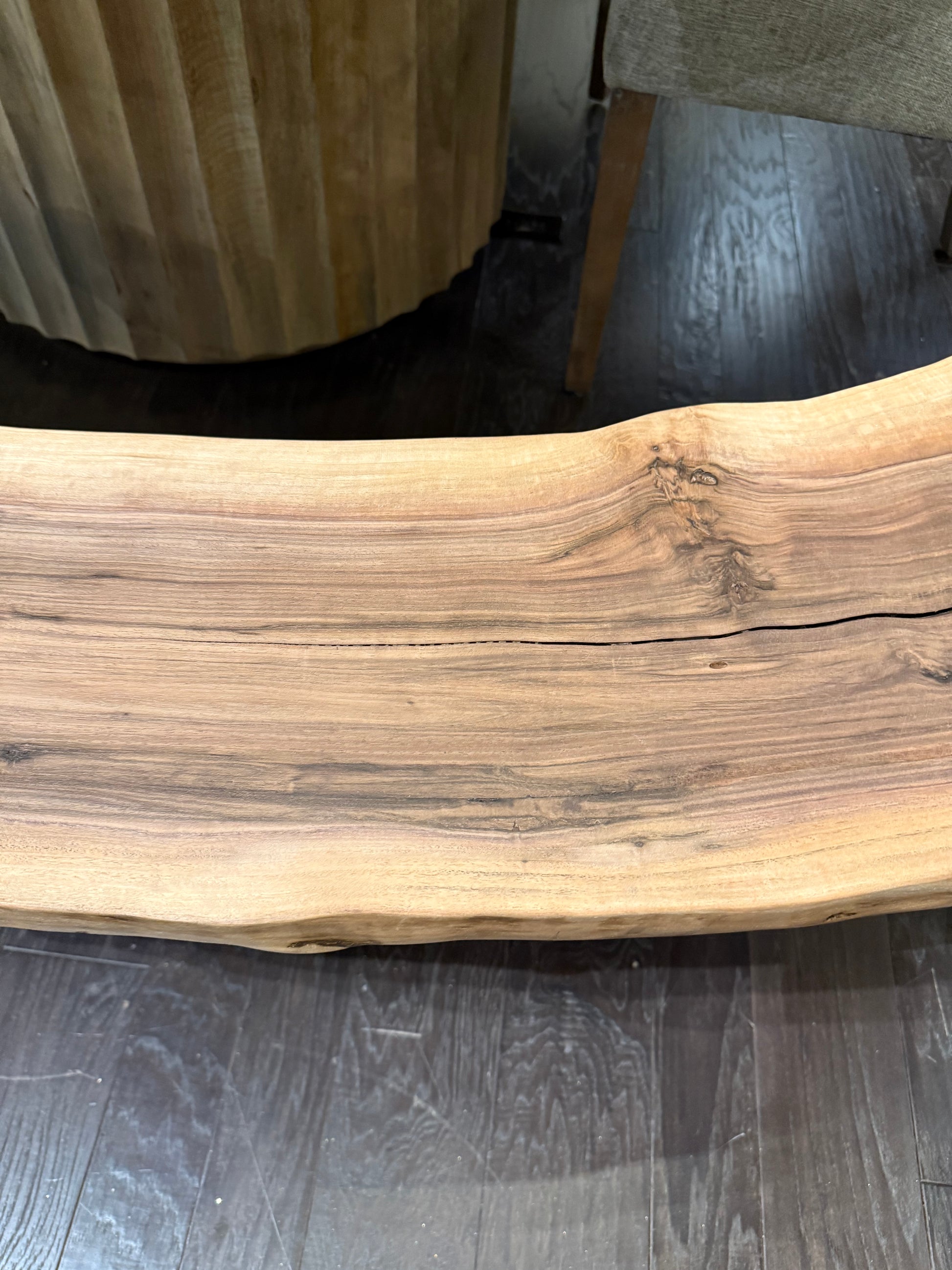 Locally sourced hickory cut and finished as a 70" bench.