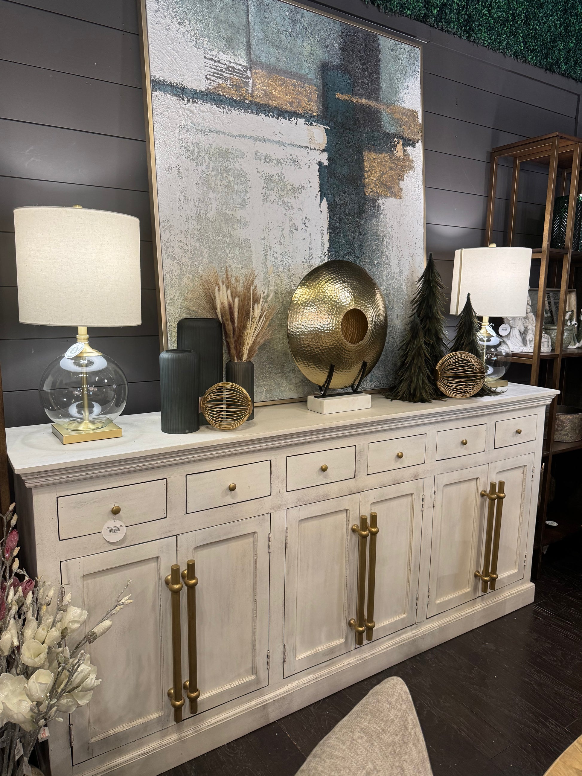 The Marley Mango Wood Breakfront in white combines timeless design with durable craftsmanship. Made from sustainable mango wood, its clean white finish enhances any space while highlighting the natural wood grain. This breakfront offers ample storage and display options with multiple shelves and compartments, perfect for organizing essentials in style. Ideal for living rooms, dining areas, or offices, it balances elegance and practicality for a refined interior.