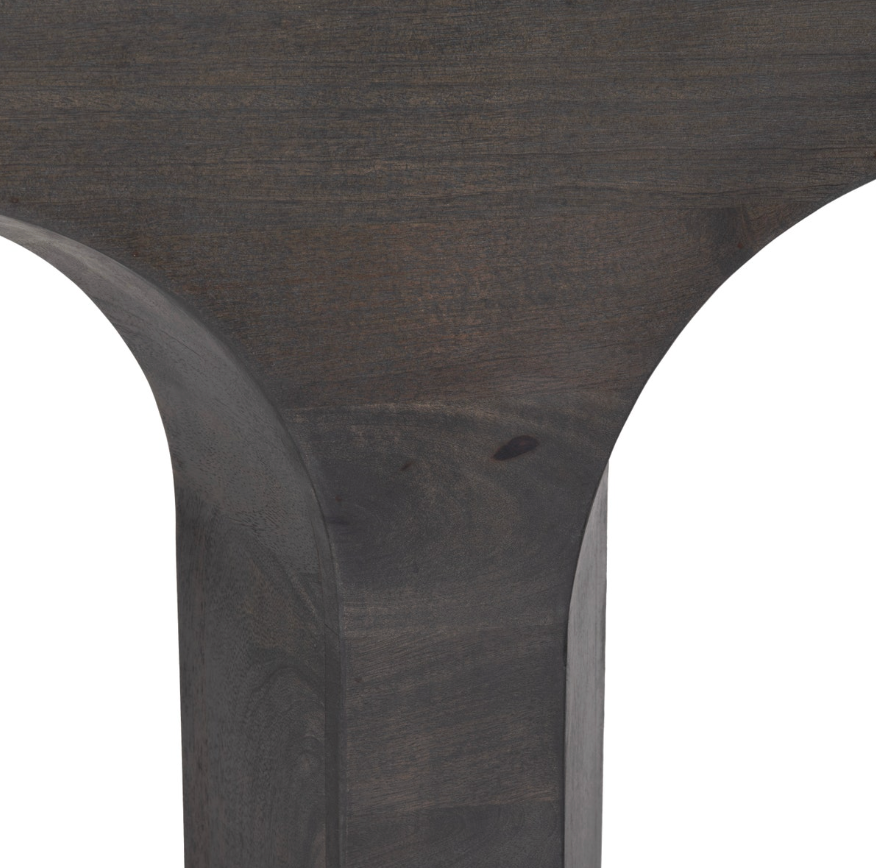 Introducing the Trinity Console Table by Crestview Collection, a striking fusion of superior quality and architectural influence. Expertly constructed of natural Mango wood, the elongated silhouette features a breathtaking three-arch design that pays homage to timeless cathedral-style artistry. Adding to the table's allure is a rich, dark brown stain finish that enhances the natural texture of the wood while exuding a sense of refinement and grandeur. This one-of-a-kind console table is destined to be the centerpiece of admiration in any rustic-contemporary themed entryway, hallway or dining room.