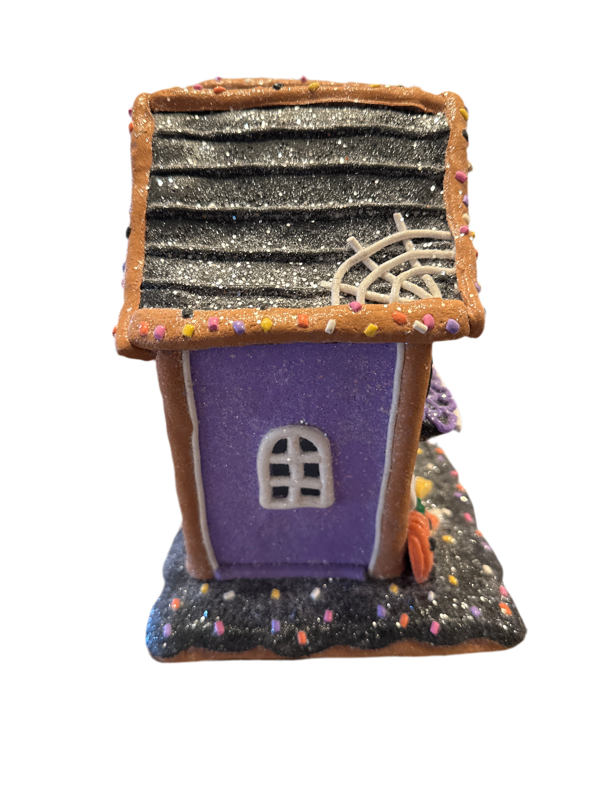 Illuminate your Halloween decor with our Light Up Spooky House. With a vibrant purple color and glitter accents, this haunted house is a perfect addition to your spooky set-up. And don't forget, it lights up for an extra eerie touch. Perfect for any Halloween enthusiast.