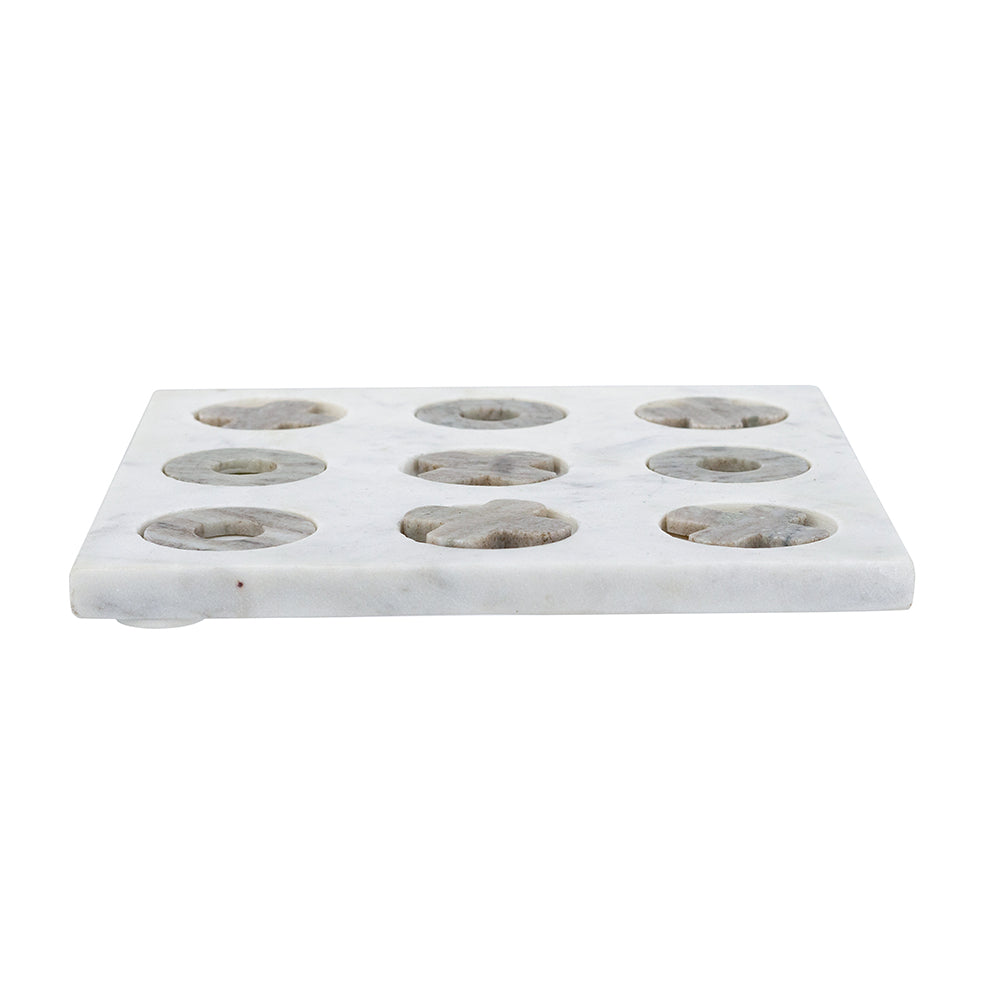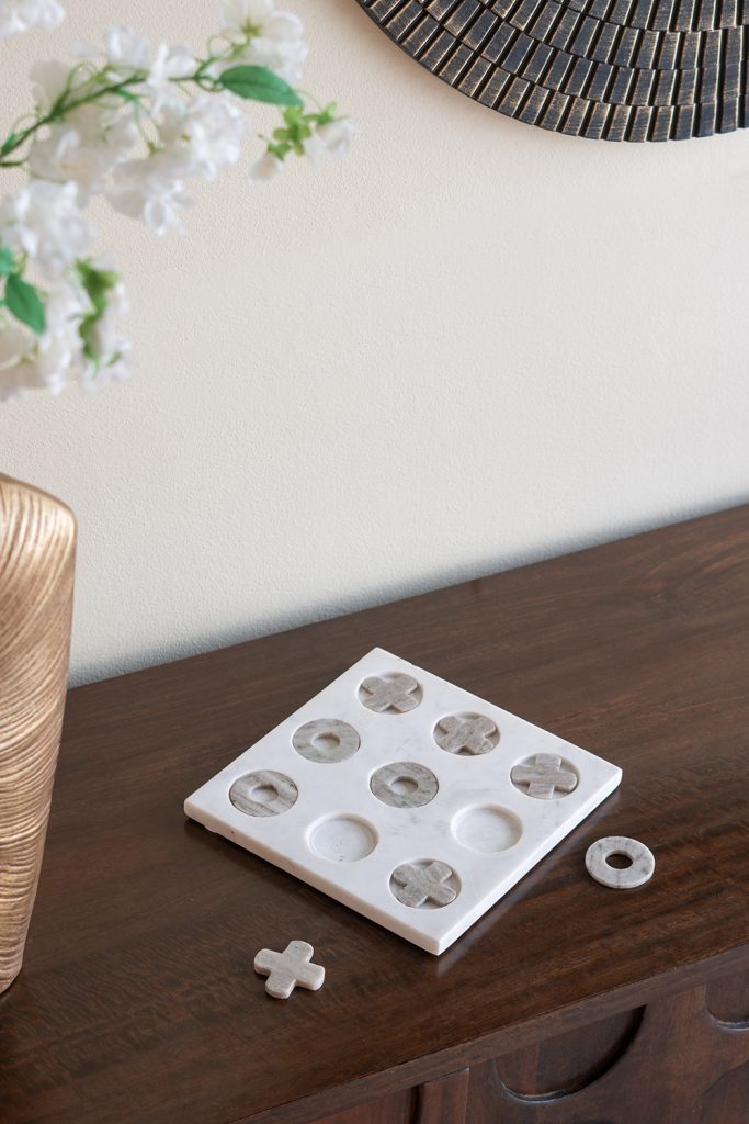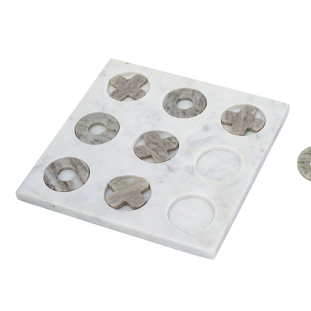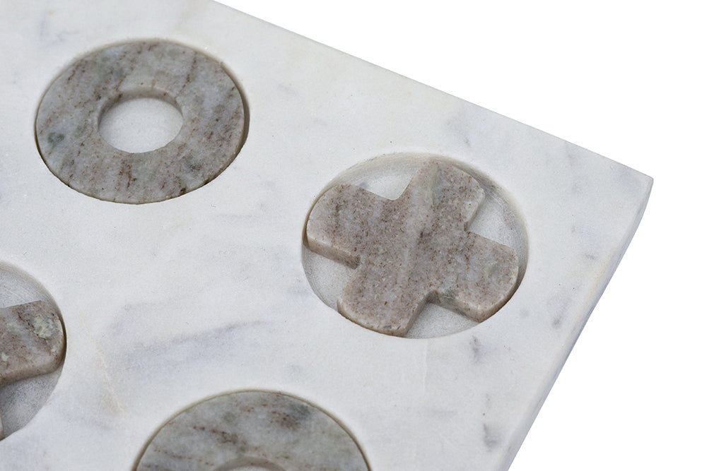 Perfect for a quick break or family game night, this decorative tic-tac-toe set brings a touch of organic elegance to any space. Crafted from authentic, high-quality marble in shades of white and gray, both the board and pieces are designed for lasting beauty and durability.