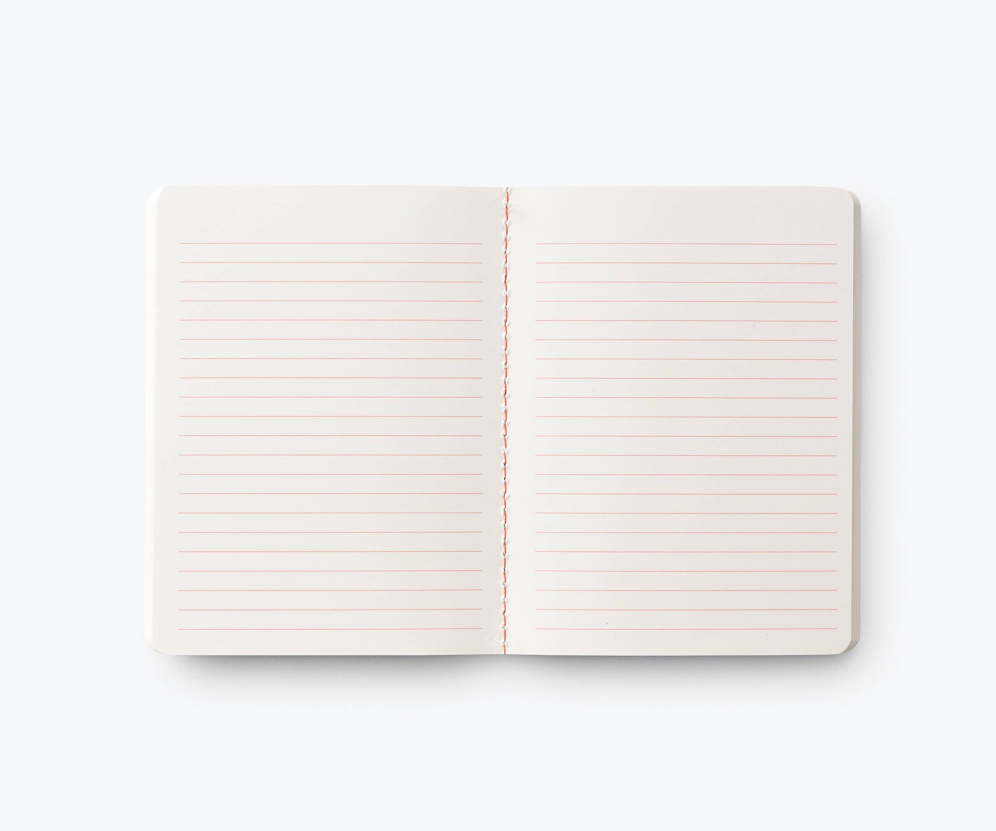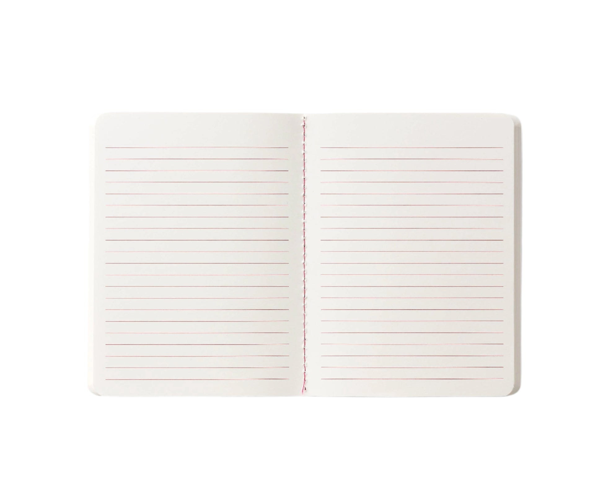 DETAILS - 5.5" L × 4.25" W - Textured paper cover with white text paper interior - Printed in full color and foil stamped - Metallic gold foil - Boxed set of 8 - Colored lines on interior pages - Contrast color thread-stitched binding - Box size: 5.625" L x 4.375" W x 2" D - 40 ruled pages per notebook - Imported