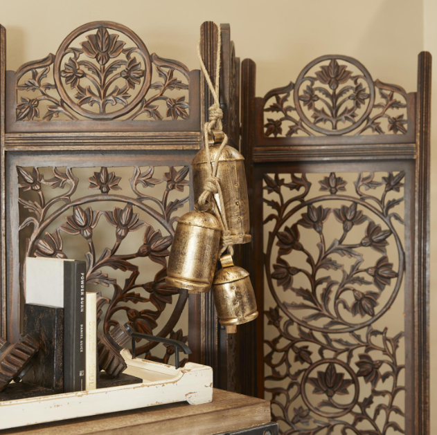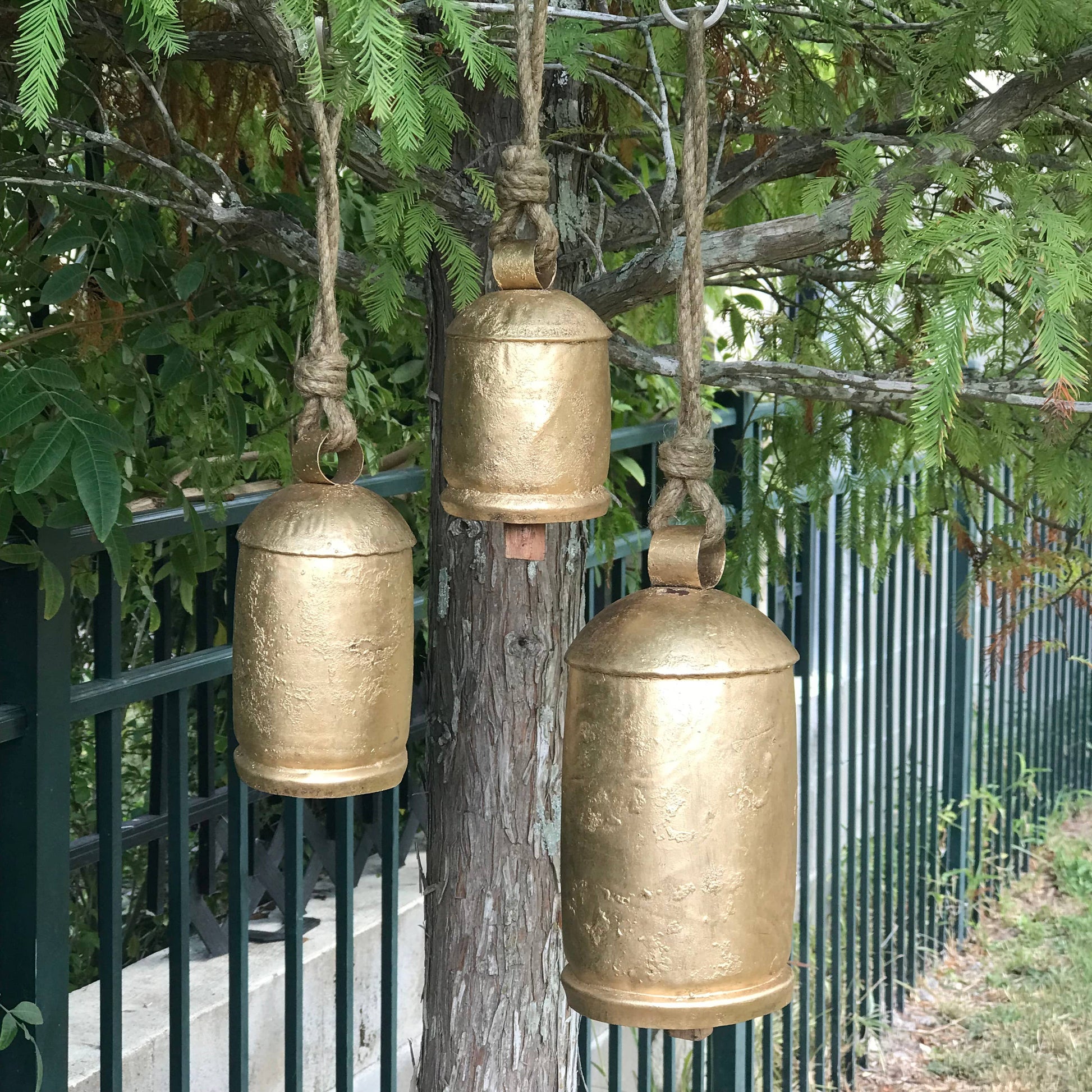 Expertly crafted from high-quality gold metal, these decorative bells are a must-have for any home. With a set of three, you can easily add a touch of elegance and charm to any room. Perfect for the holiday season or year-round decor, these best-selling bells will be sure to elevate your home's style.